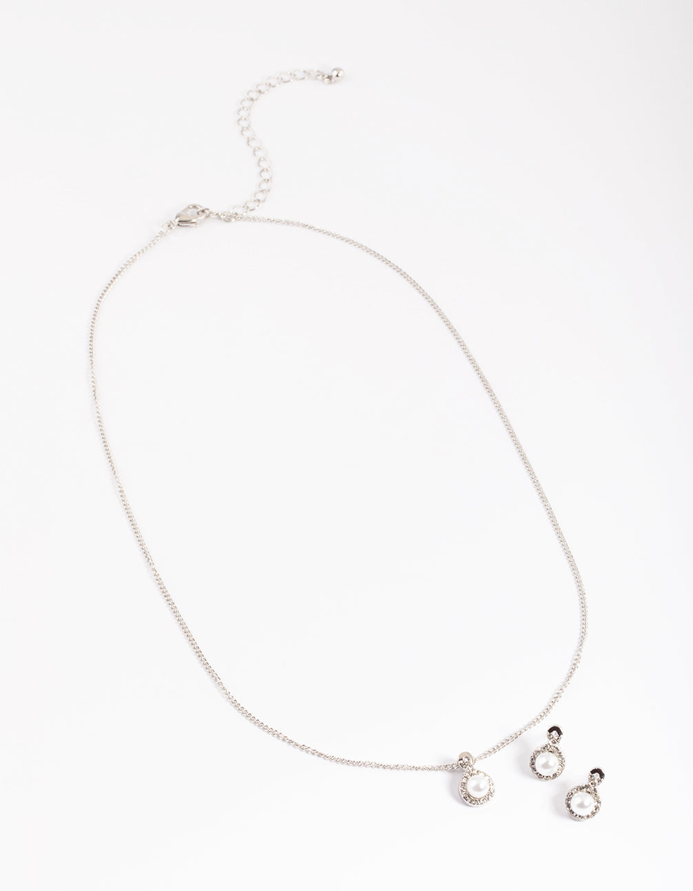 Silver Diamante Pearl Swirl Necklace & Stud Earrings