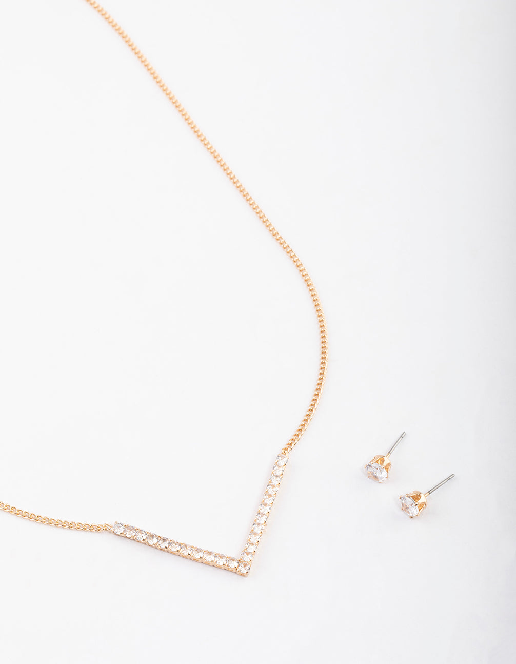 Gold Cubic Zirconia V Necklace & Stud Earrings Set