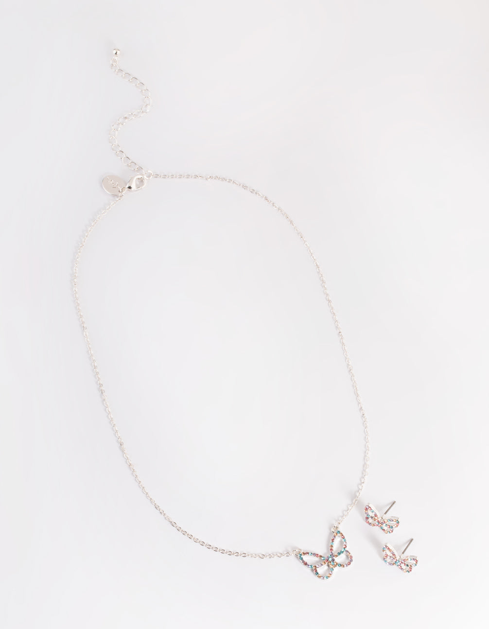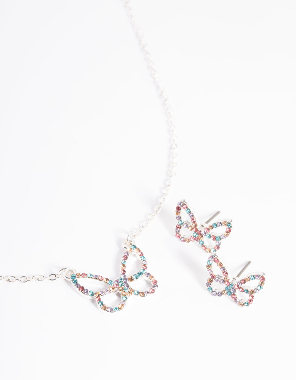 Silver Diamante Butterfly Necklace & Stud Earring Set