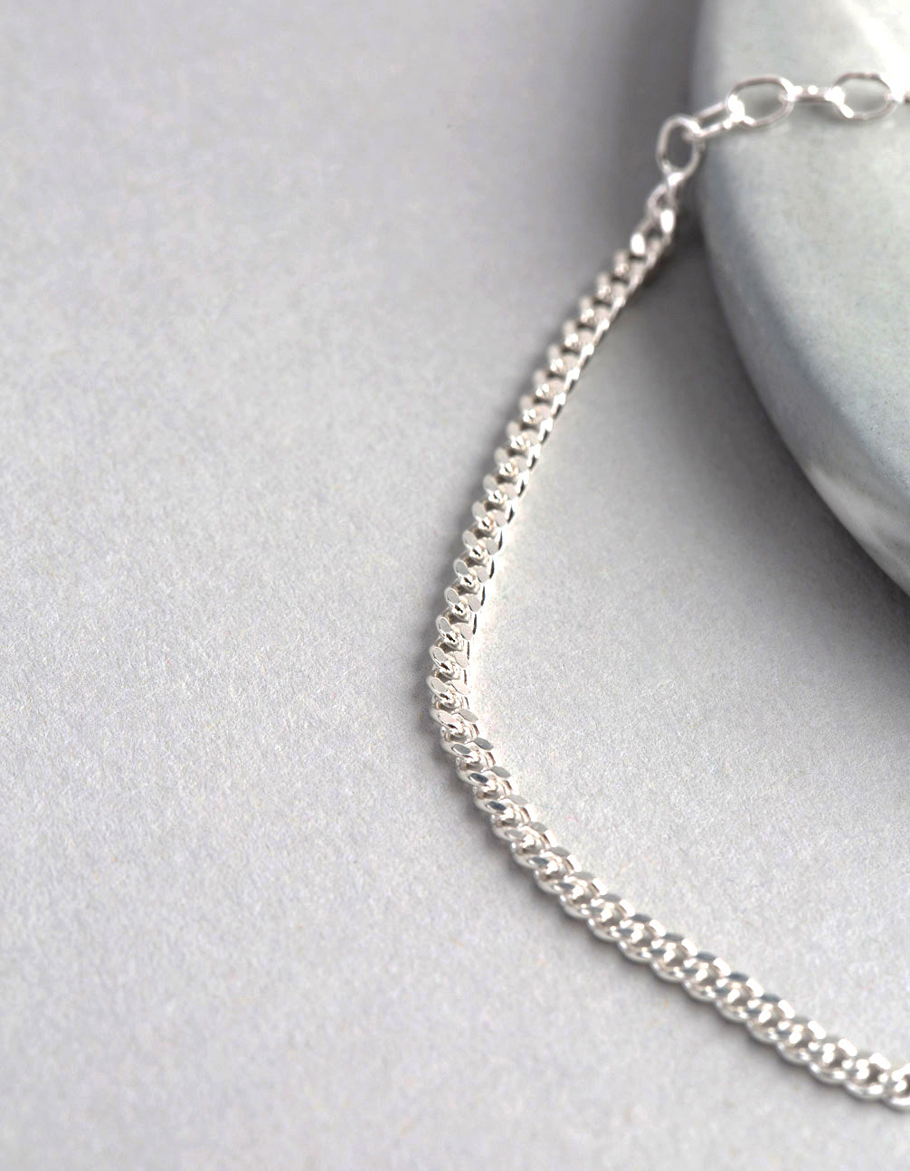 Look effortlessly chic with a genuine silver chain. This Lovisa Black Label bracelet is made from 925 sterling silver, which has been stamped with signature 925 to indicate authenticity and purity. It features a timeless diamond cut curb chain. Wear it with our Sterling Silver Diamond Cut Curb Chain Necklace, layer it with other pieces or go for simple elegance and wear it on its own.