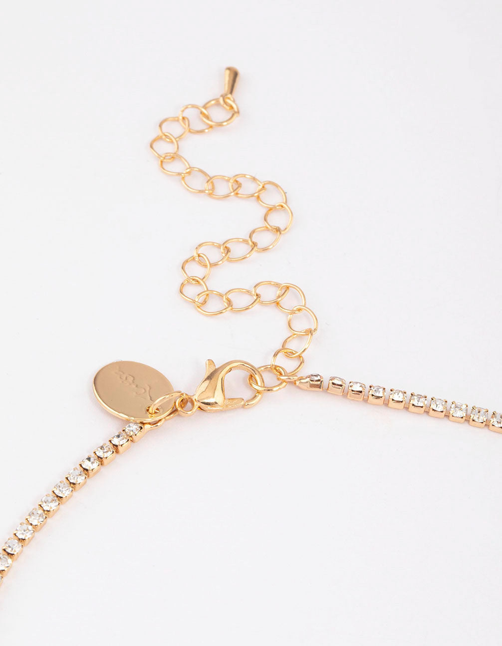 - This Gold Diamante Leaf Pointed Earrings & Necklace Set contains a layered necklace with a pair of graduating link drop earrings to match.