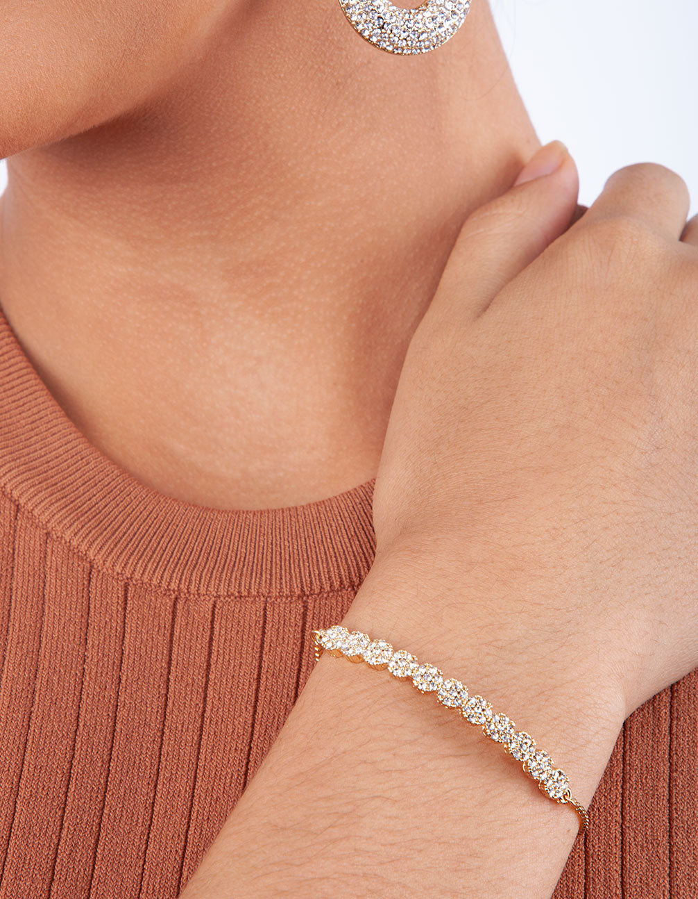 Glimmer and shine with diamante‰۪s and gems and add some glamour to your evening edits. This bracelet boasts a diamante embellished gold-toned design.