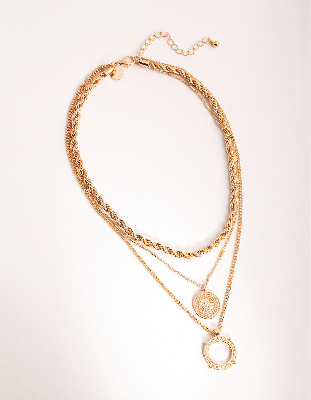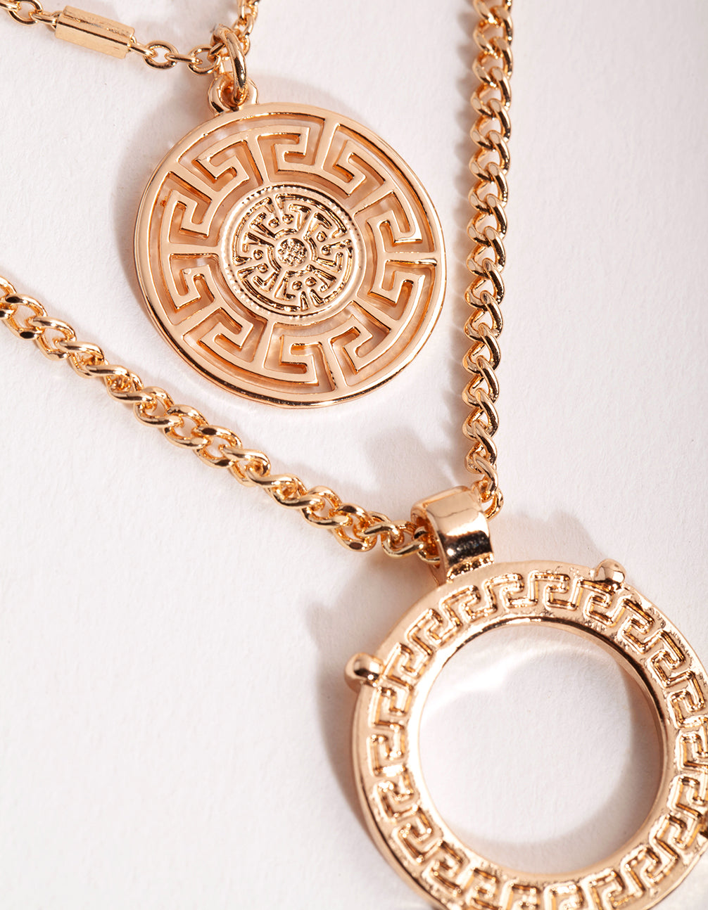 Gold Greek Key Disc Layered Necklace