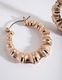 A fun pair of fashion earrings are an easy way to spice up your daily ensembles! These hoop earrings boast a bamboo inspired design in a gold tone. Hypoallergenic.