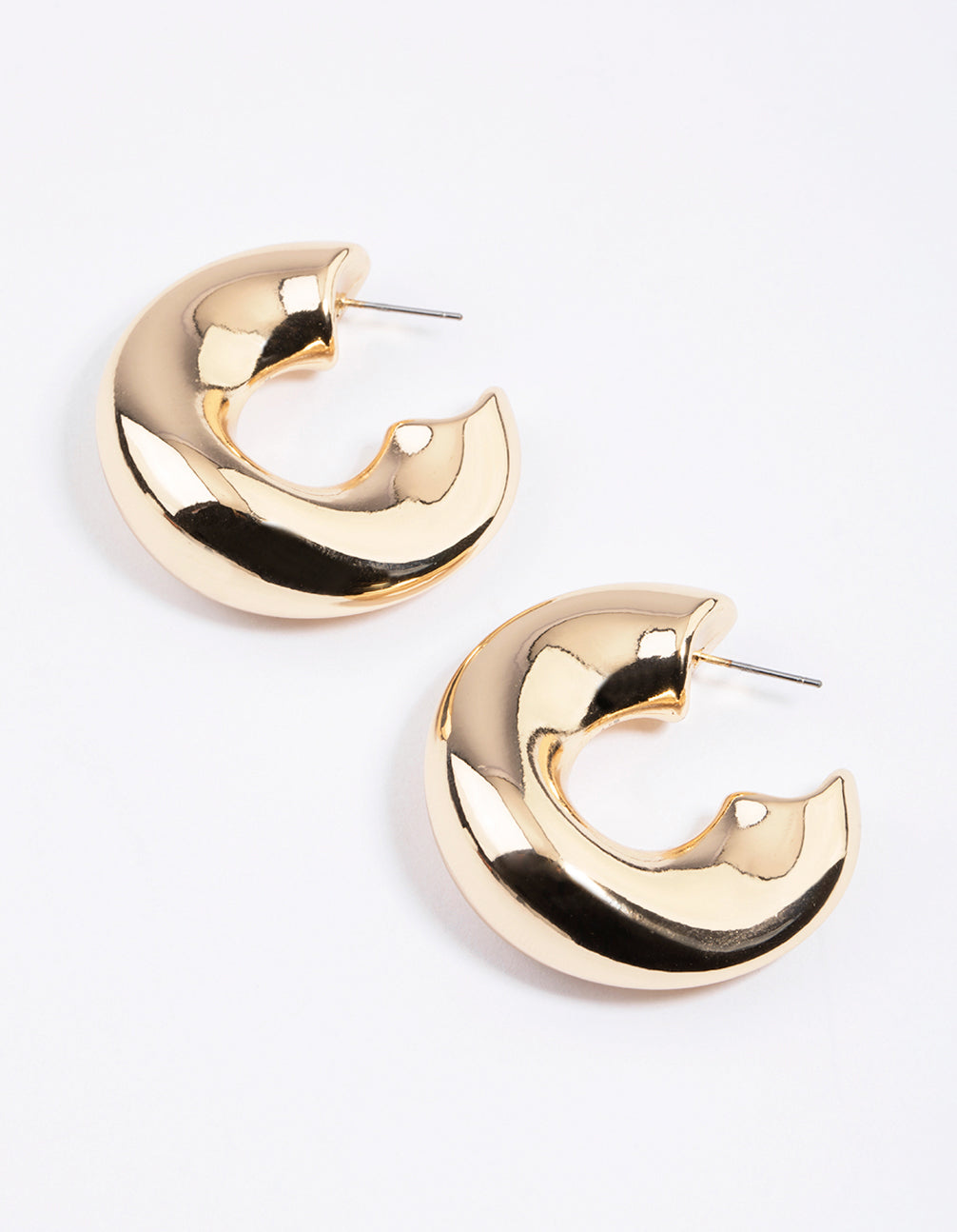 - Style these gold-toned, organic-shaped, thick hoop earrings with a simple pendant necklace for a minimalistic look.