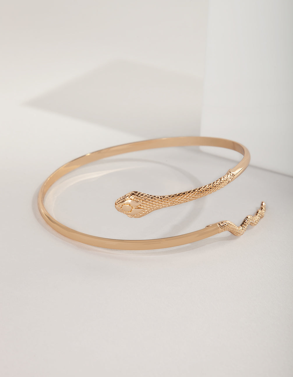 This arm cuff comes in a classic gold tone and features a trend-led rattlesnake design.