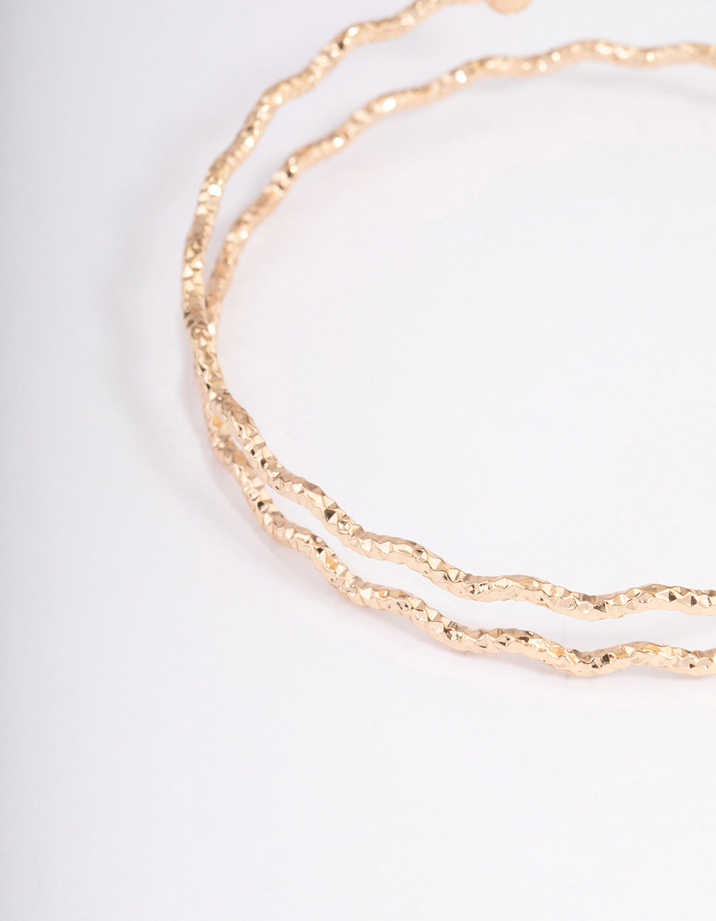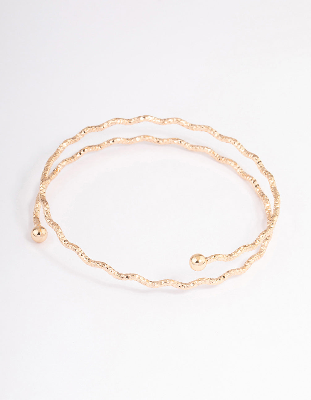 - Style this gold-toned textured cuff bangle features two thing bands that wrap around each other for an interlaced look.