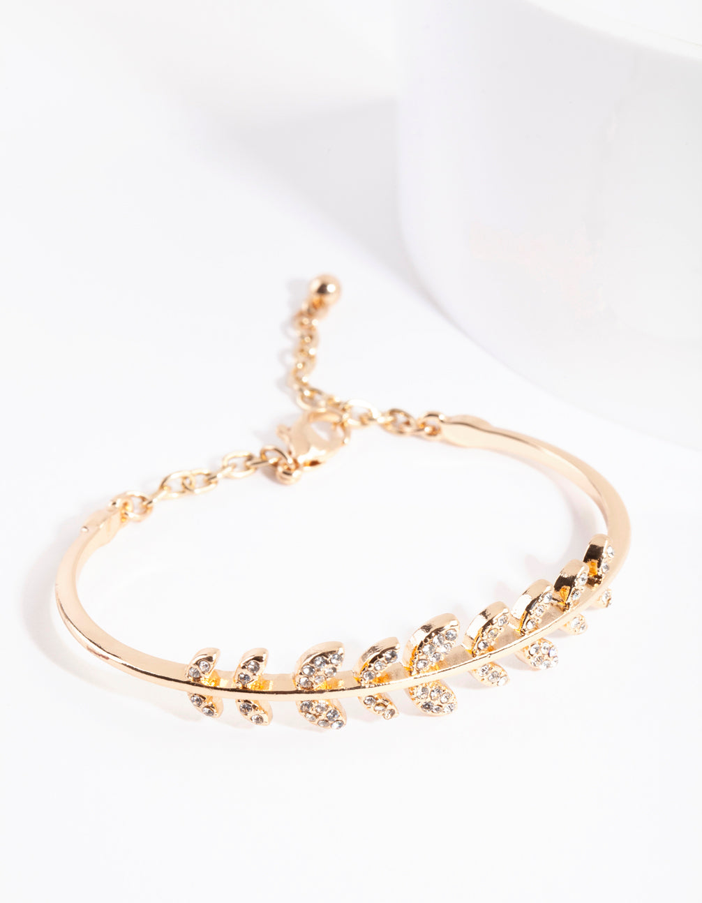 We love a bracelet stack! Mix and match styles to create your own customised look, or wear alone for a curated addition to any outfit. This gold-toned bracelet cuff boasts a crystal laurel design.