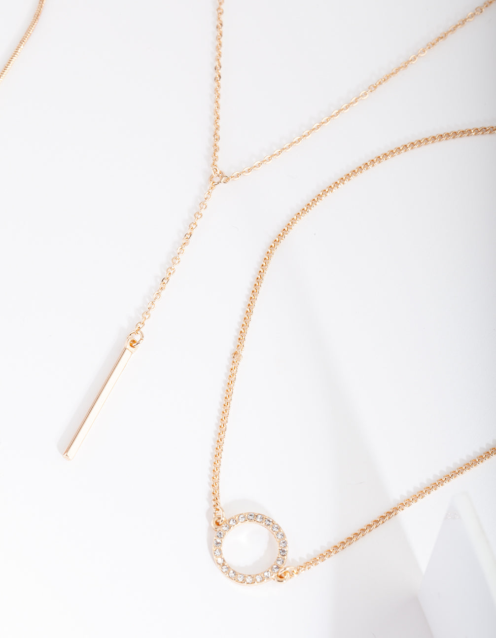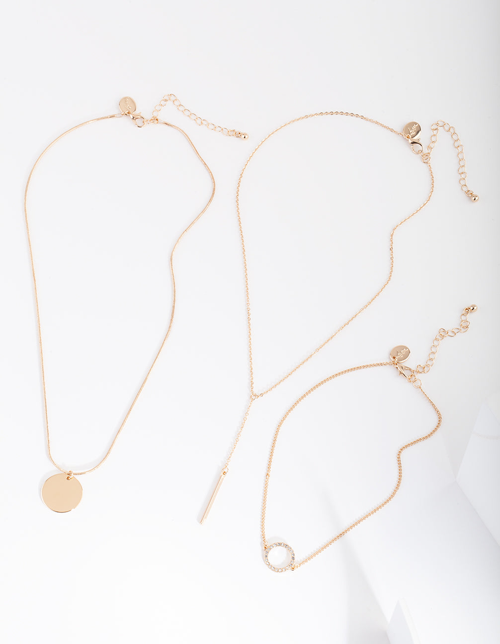 Layer it up with finer chains or wear alone for a considered look. Nearly every outfit can be elevated with neckwear. This necklace features a gold-toned layered bar and disc design.