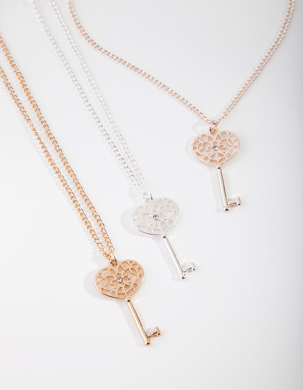Shareable and packed in pretty packaging. Lovisa gift-boxes take the stress out of giving. This gift pack comes with a trio of necklaces in mixed metal tones and key pendant designs.
