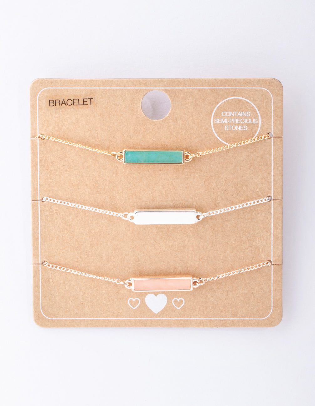Give the perfect gift to that special someone or treat yourself with this mixed metal semi precious stone bar bracelet pack.