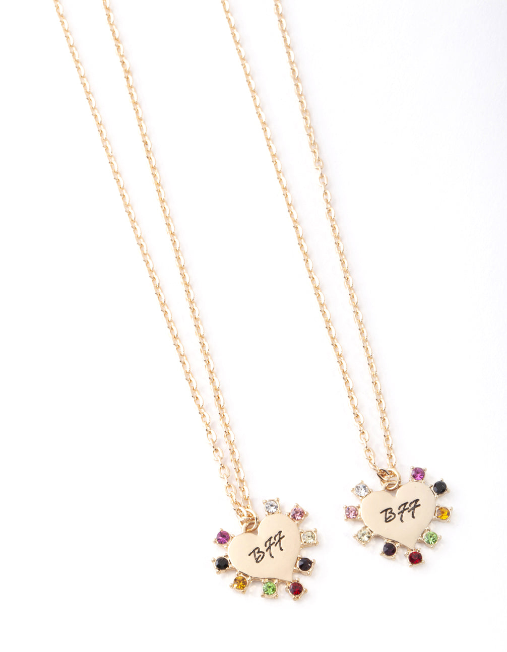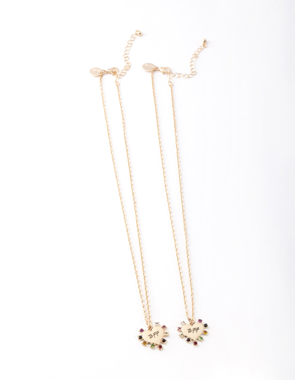 Give the perfect gift to that special someone with this gold-toned BFF multi-coloured stone heart pendant necklace pack.
