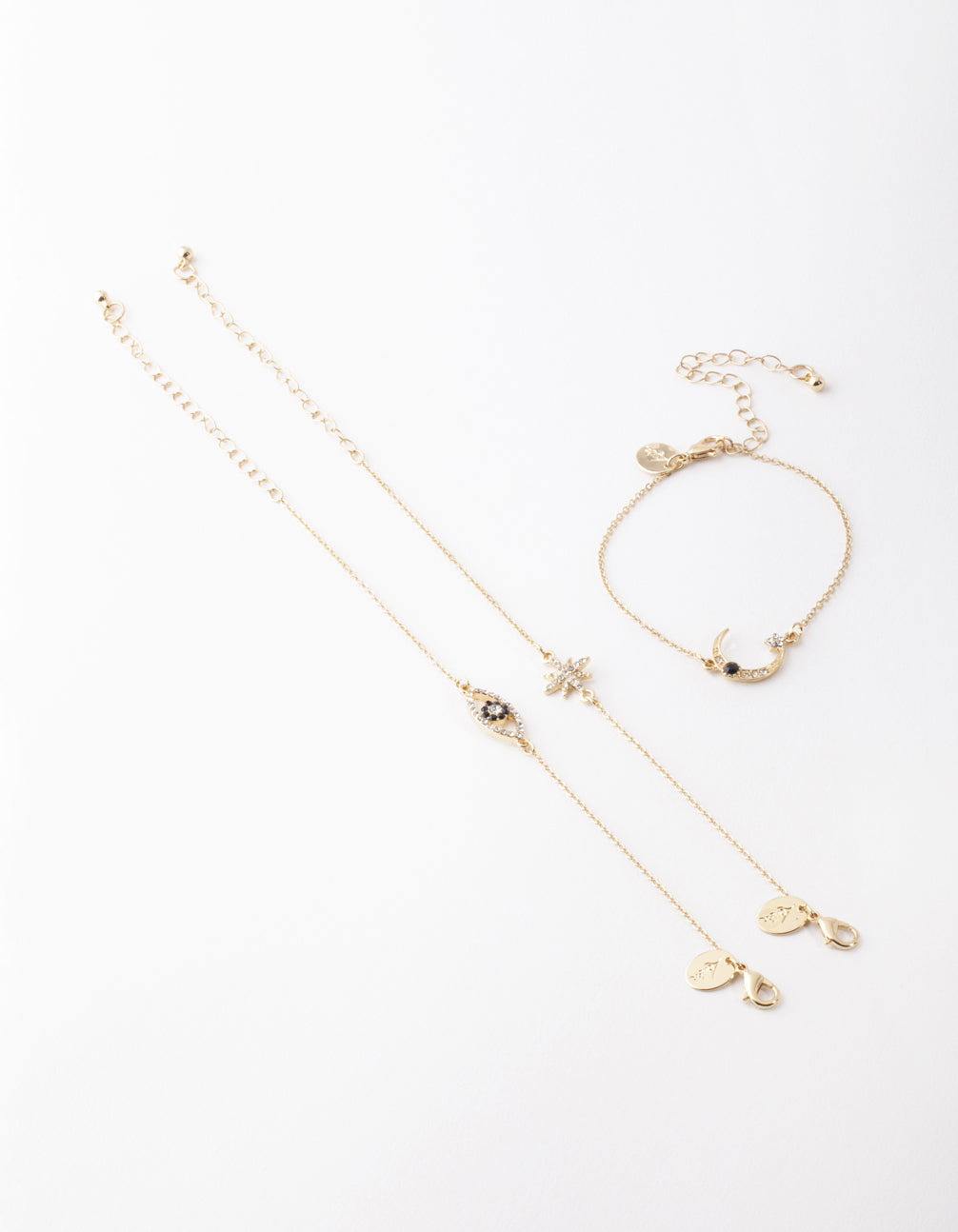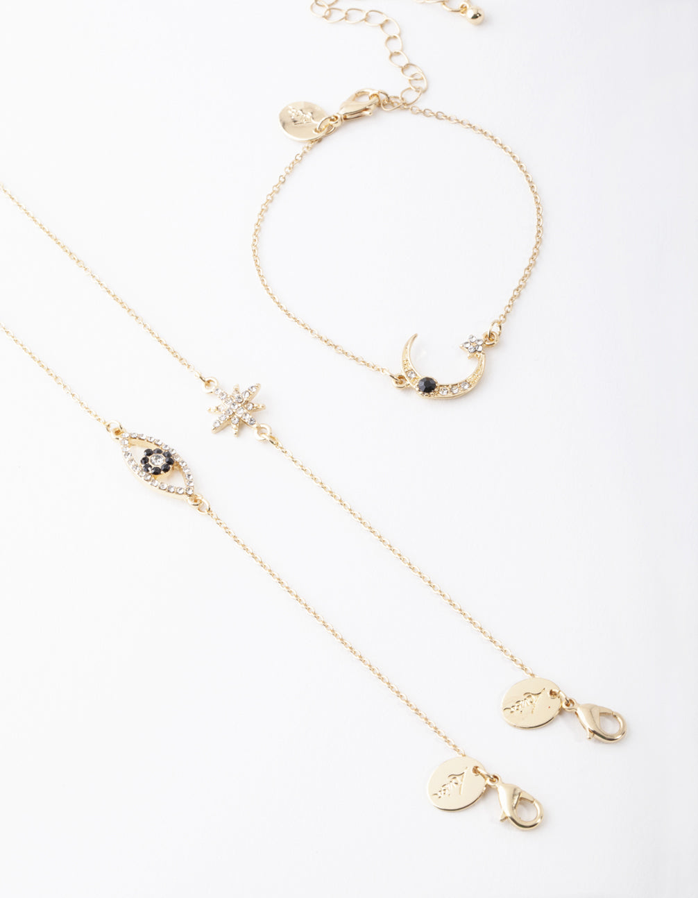 Give the perfect gift to that special someone with this gold-toned diamante embellished star and moon pendant bracelet pack.