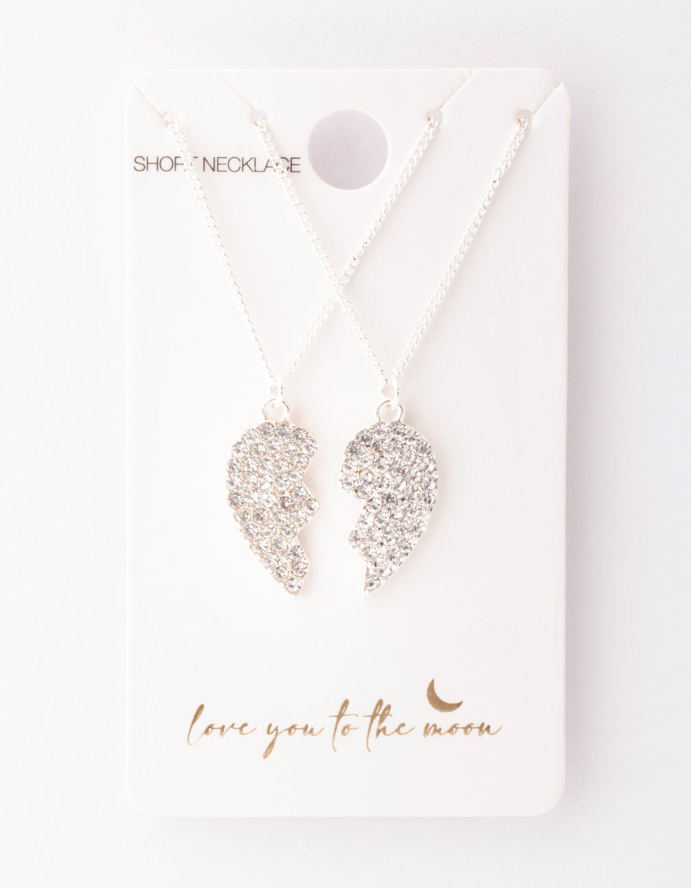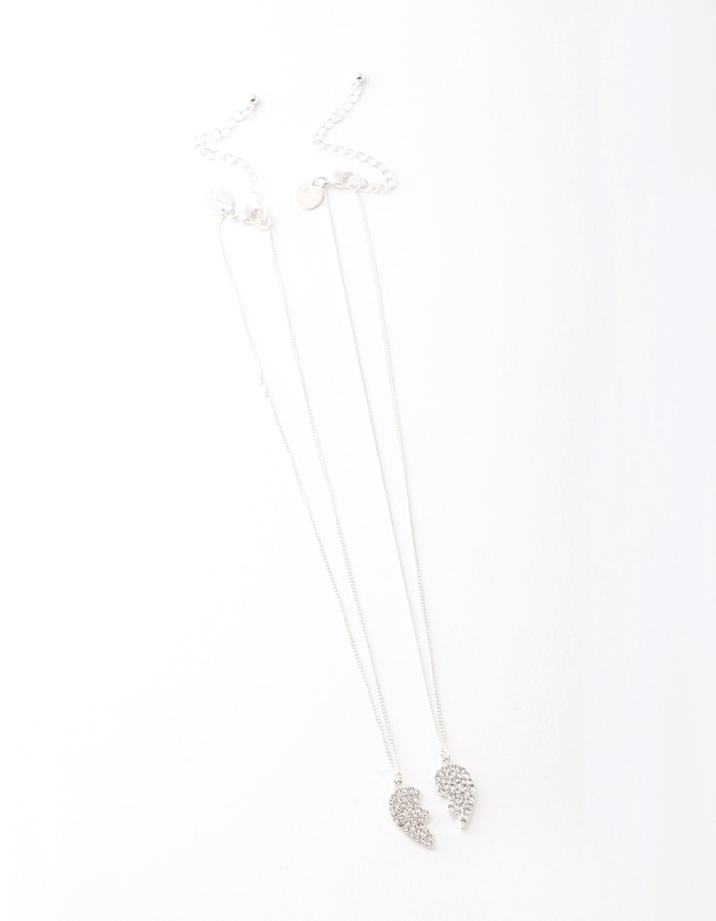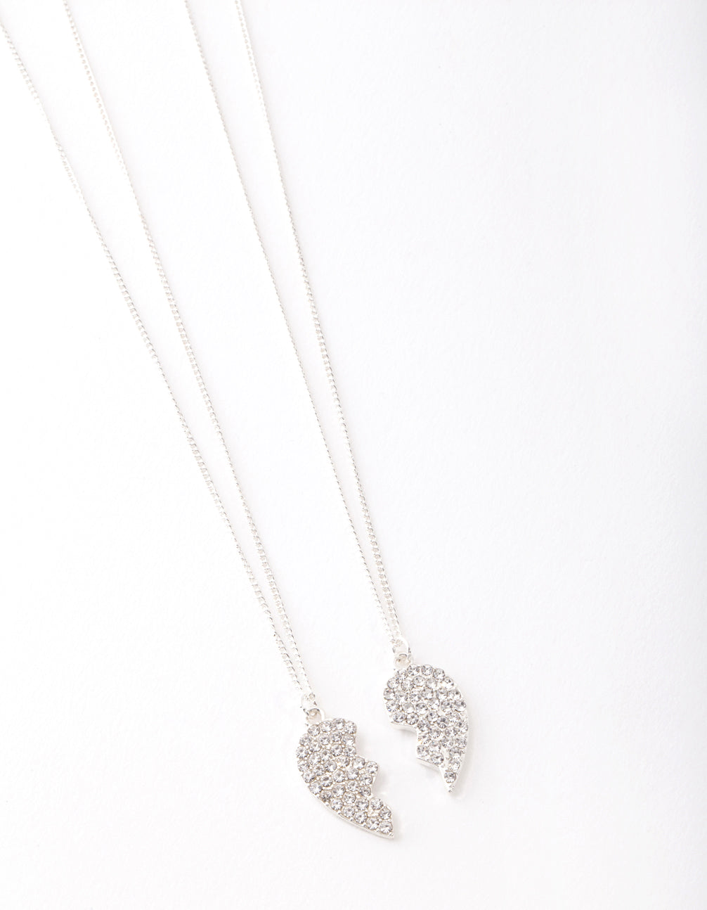 Give the perfect gift to that special someone with this silver-toned diamante embellished half heart pendant necklace pack.