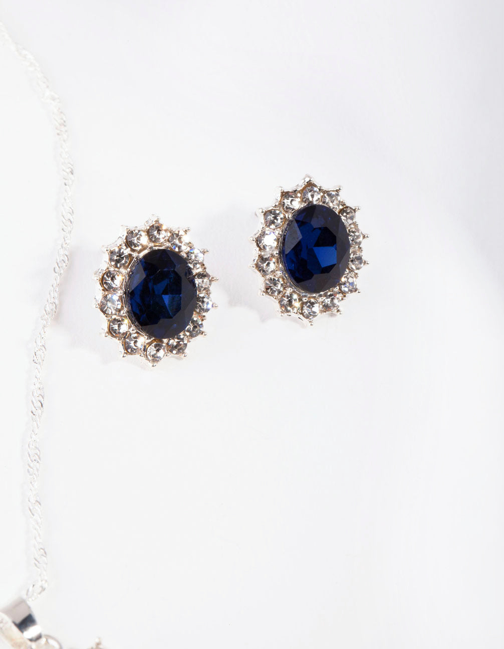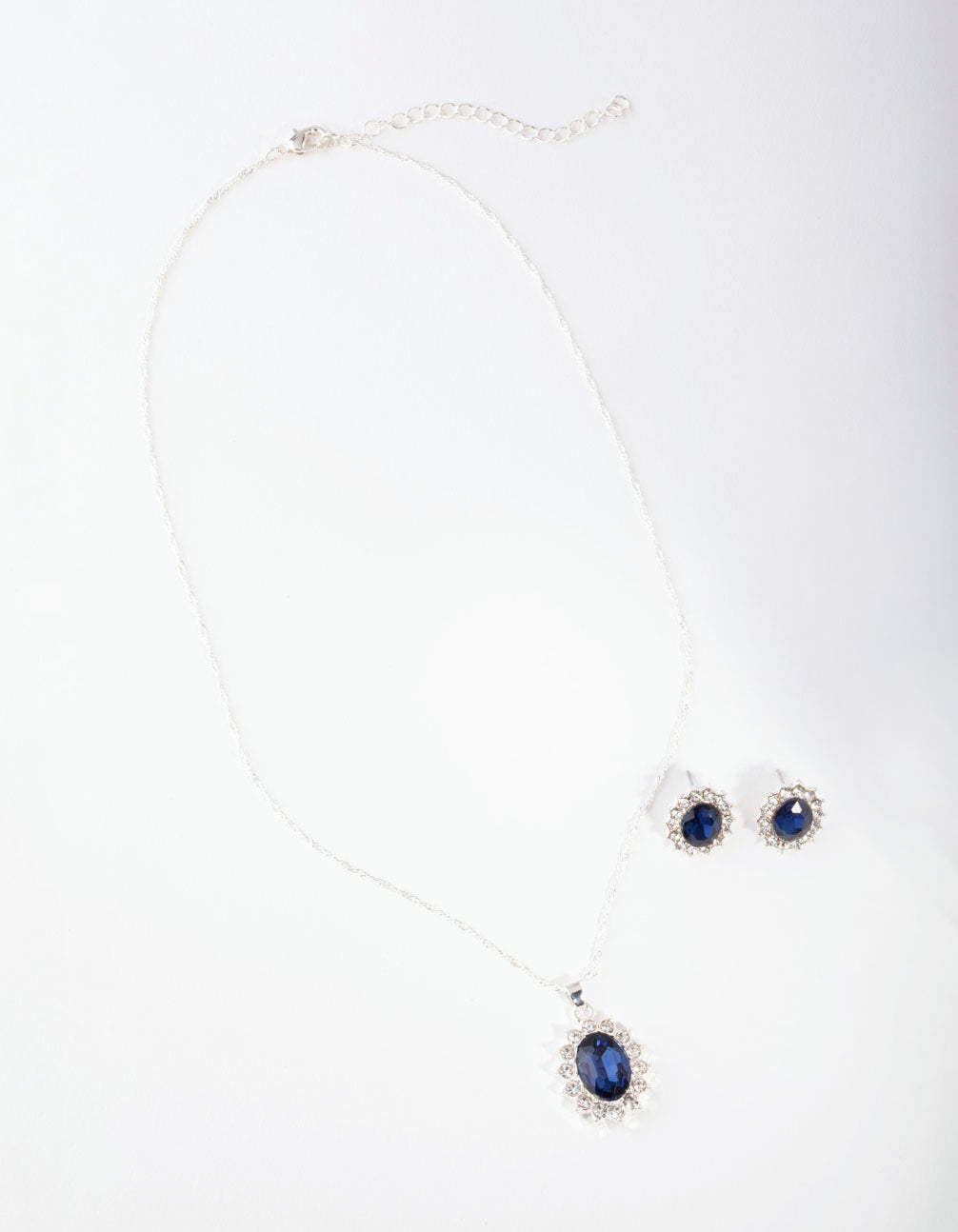 Silver Oval Blue Gem Jewellery Set Silver Oval Blue Gem Jewellery Set Silver Oval Blue Gem Jewellery Set