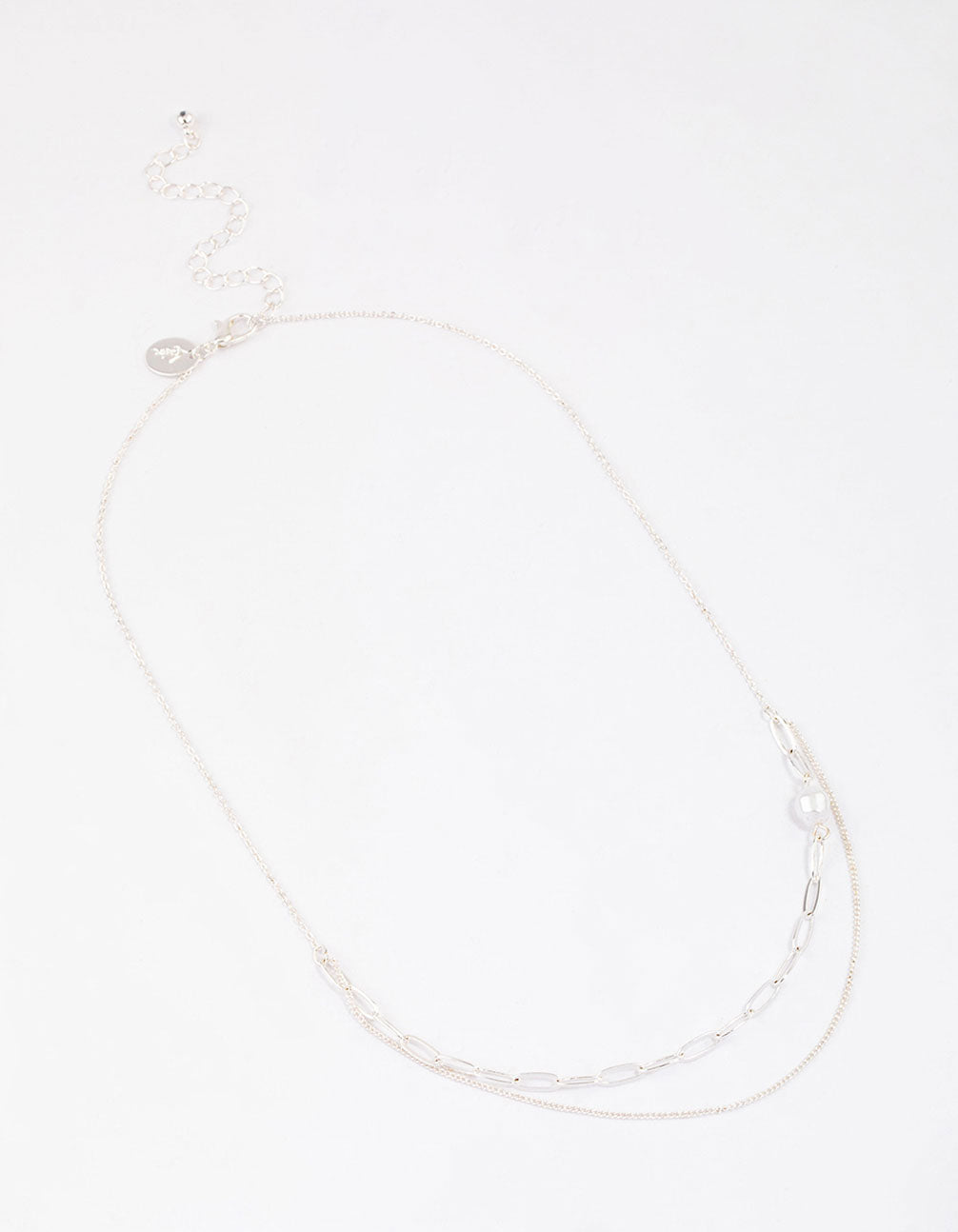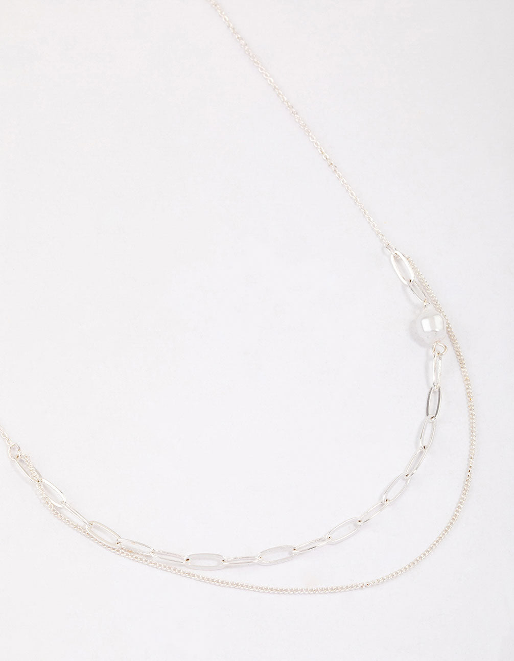 - Style this Silver Double Row Pearl Chain Necklace with a dainty choker and pop it back in its pouch when you're done styling.