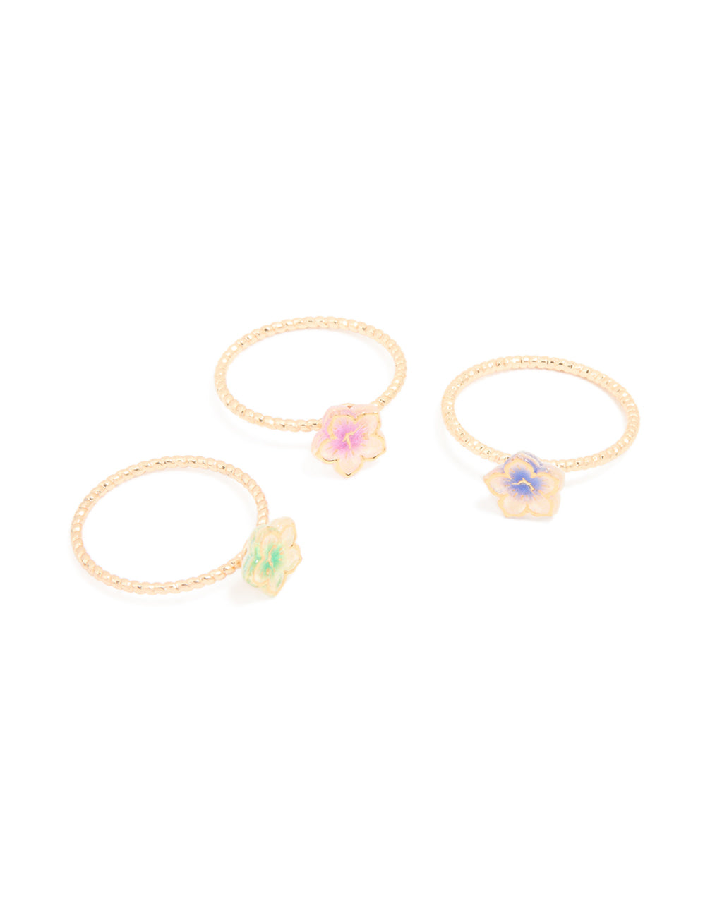 Gold 3D Pastel Flower Fine Rings 3-Pack