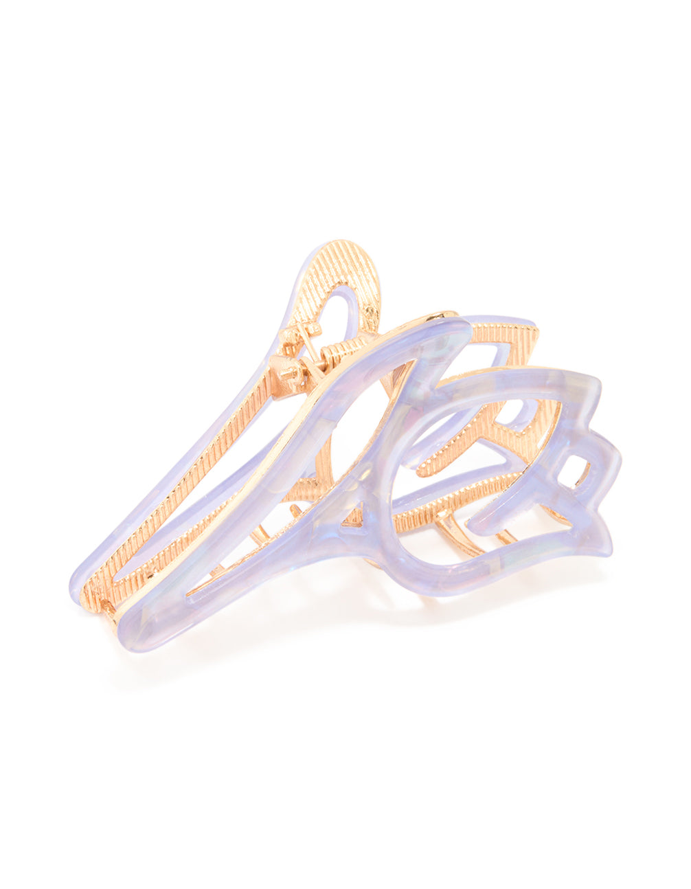 Add a touch of elegance to your everyday with the Gold Acrylic Edge Tulip Claw Clip. Featuring a delicate tulip-inspired design outlined in acrylic, this hair accessory is as stylish as it is practical. Perfect for securing casual updos or taming loose locks, it's ideal for everything from brunch dates to office chic. Whether paired with a flowy dress for a romantic vibe or dressed down with jeans and a cosy jumper, this claw clip is a must-have for effortless hair styling. Its sturdy design ensures a secure hold, while the tulip edge detail adds a playful, feminine twist. A true essential for anyone looking to elevate their hair game!