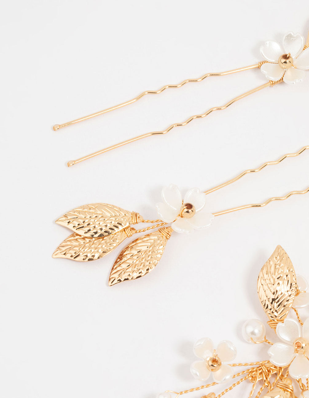 Gold Acrylic Flower Hair Combs & Hair Pins 5- Pack