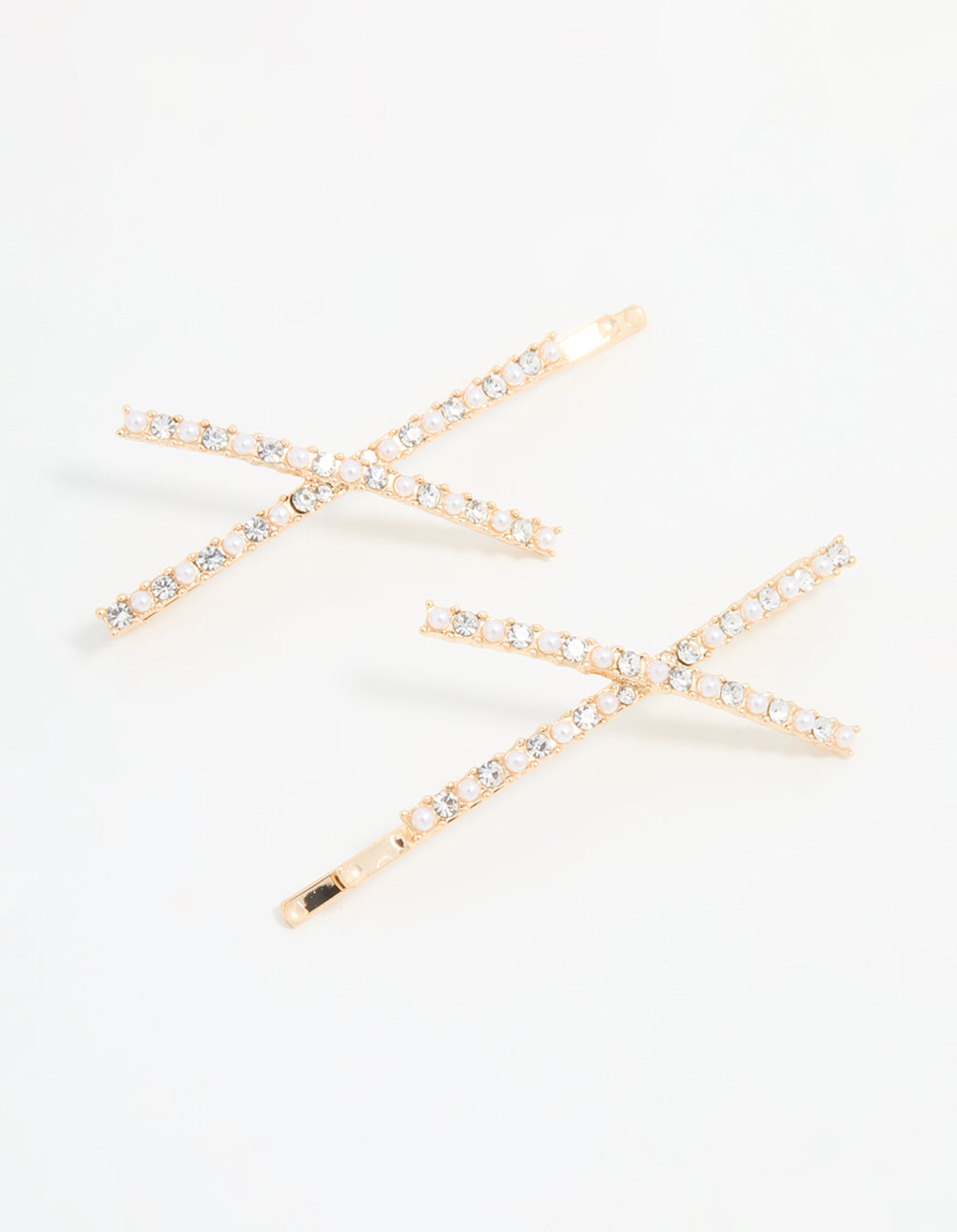 Gold Acrylic & Pearl Crossover Hair Slides 2-Pack