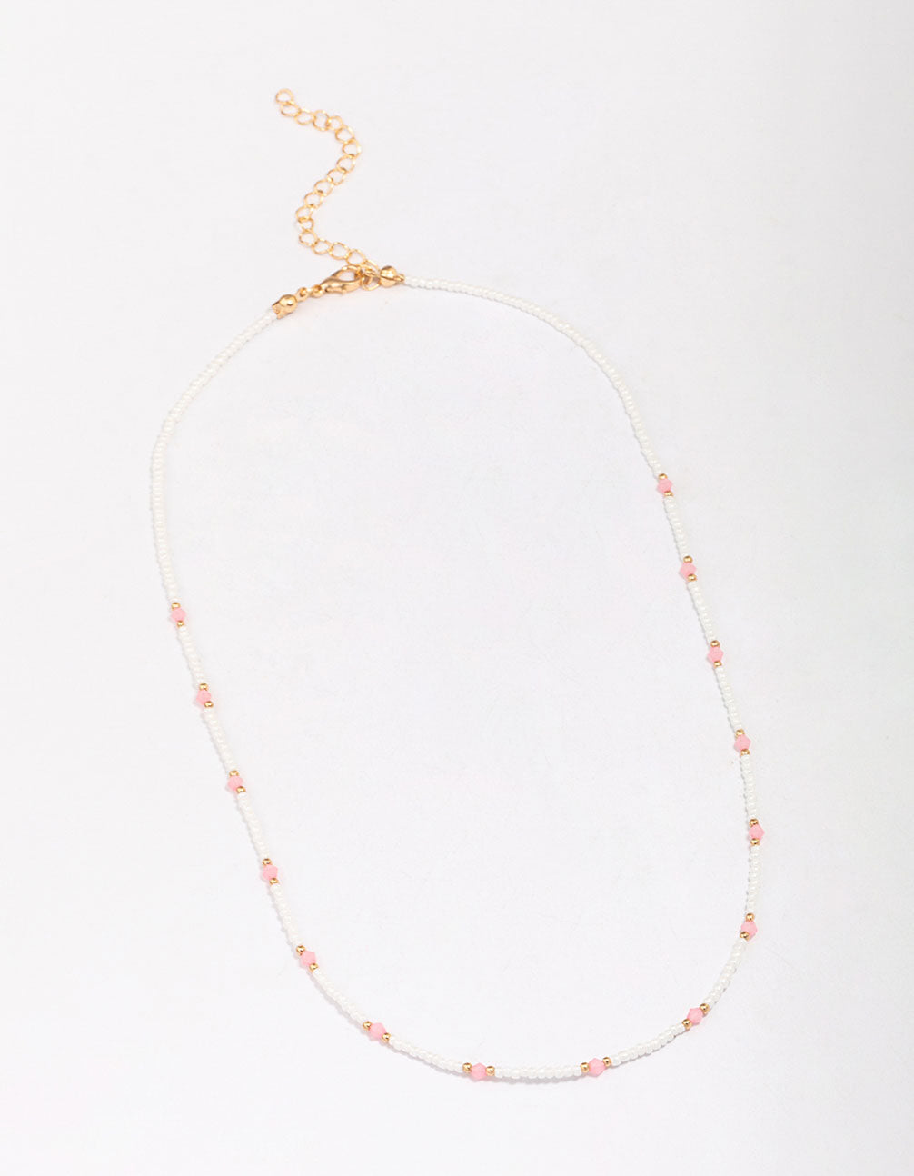 Add detail to your stack with this gold-toned necklace. This chain features a collection of white and gold beads for an intricate finish to your look.