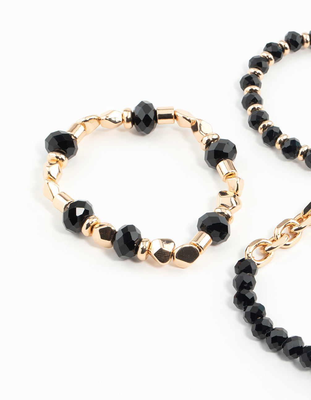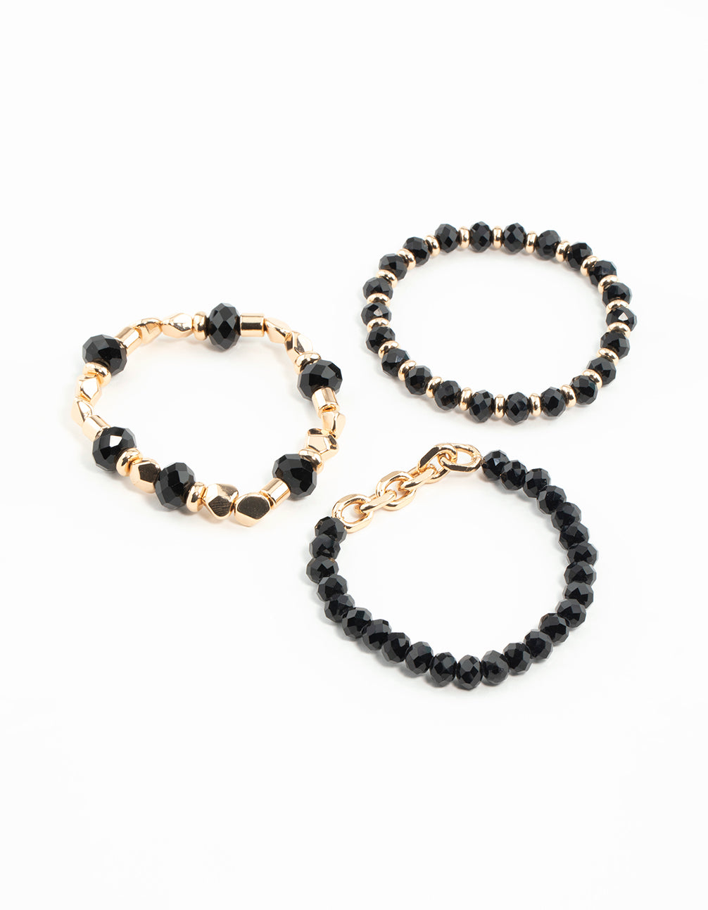 Gold & Black Faceted Bead Chain Stretch Bracelets 3-Pack