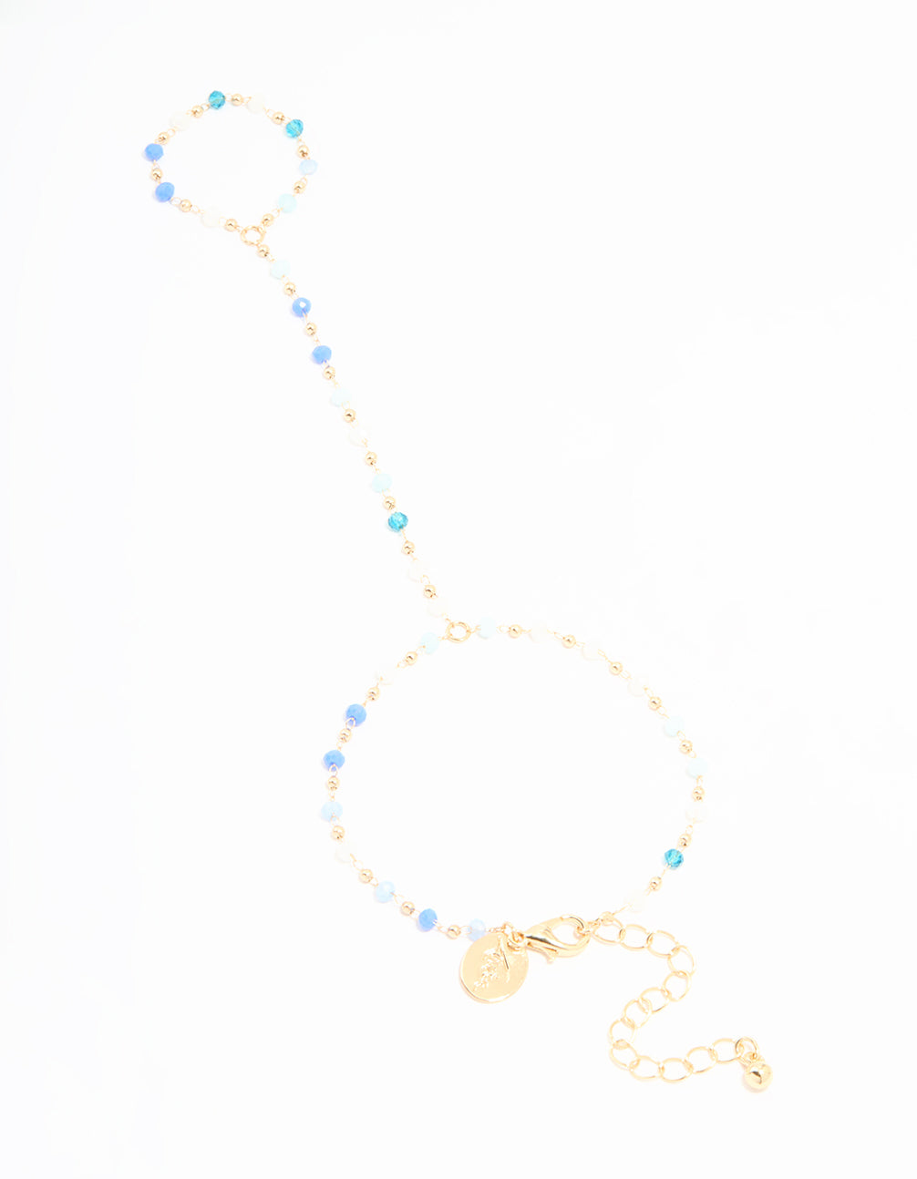 Gold Blue Faceted Bead Hand Chain