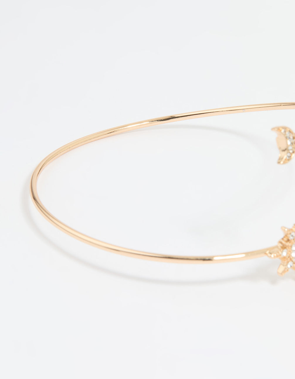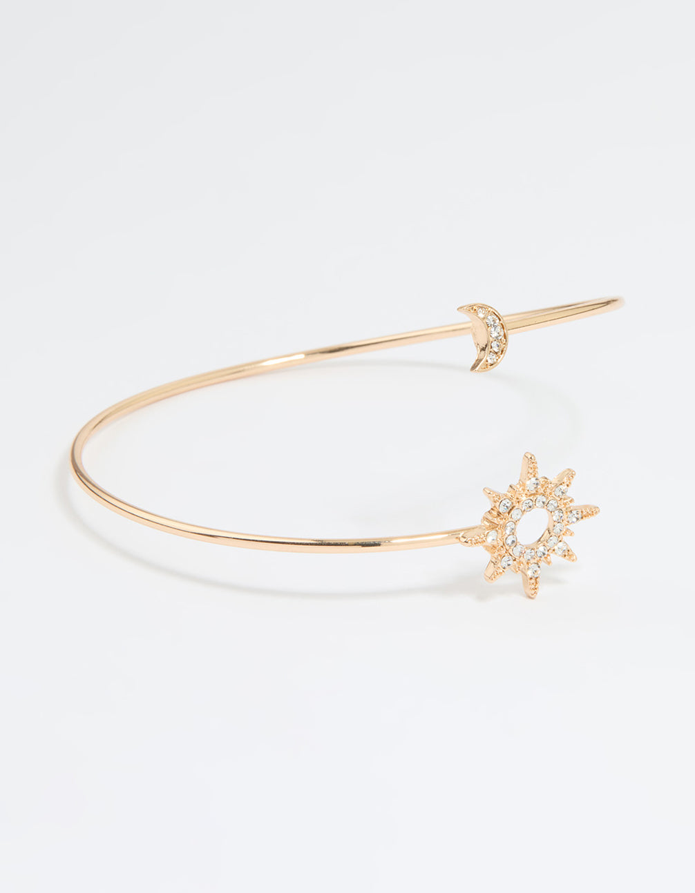 Add a little sparkle to your style with this Gold Celestial Diamante Arm Cuff! This cuff features a delicate celestial-inspired star and moon design, accented with shimmering diamantes for a dazzling finish. Crafted with a polished gold-toned metal, it wraps gracefully around your arm, creating a chic and eye-catching look. Perfect for festivals, nights out, or special occasions, this arm cuff pairs beautifully with sleeveless dresses, strappy tops, or even a boho-inspired jumpsuit.