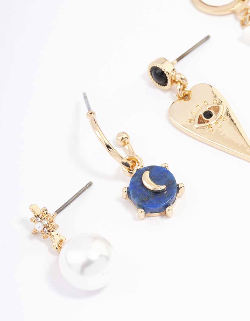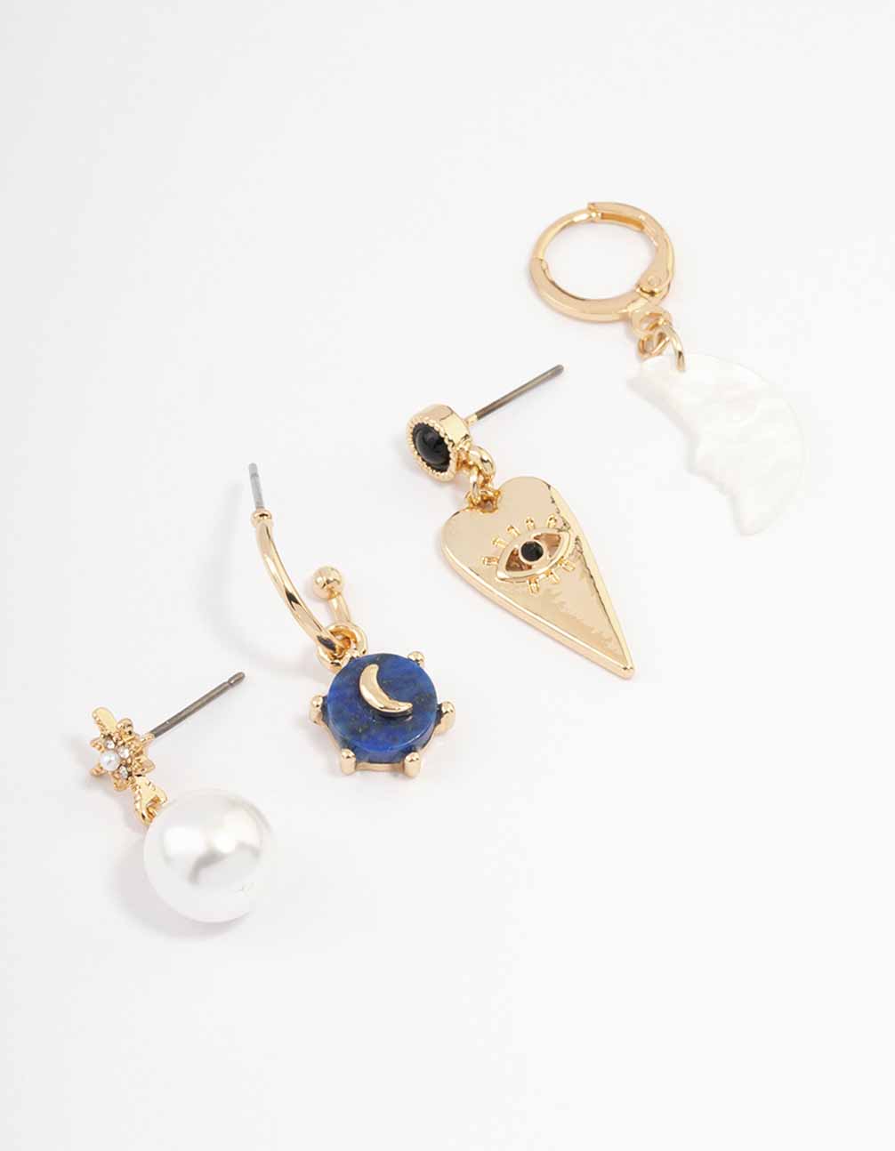 This four pack of huggie hoops features a gorgeous gold-toned setting, adorned with pearls and moon charms for a celestial feel.