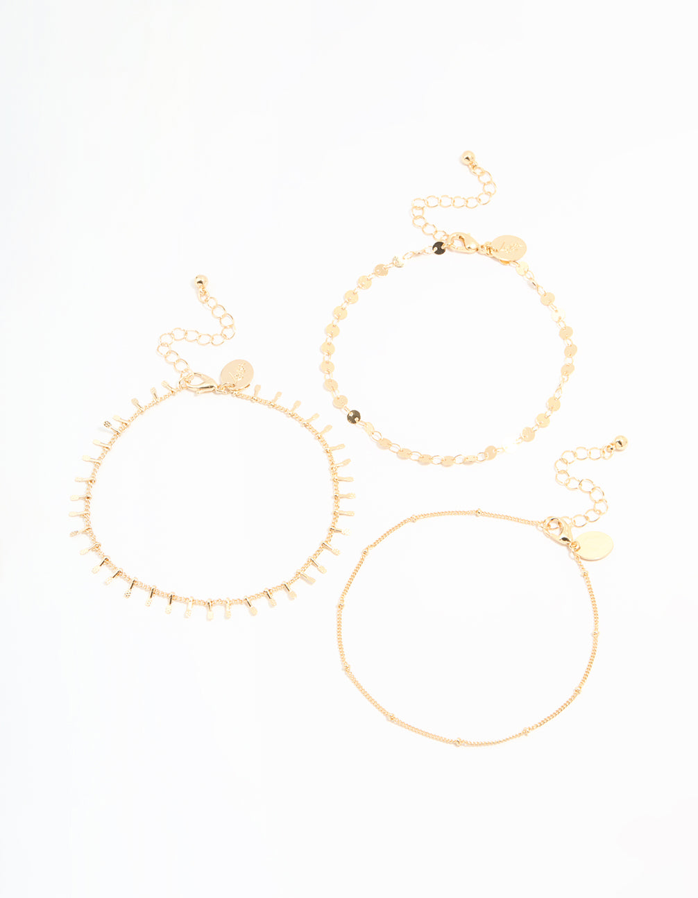 Gold Chain & Droplet Dainty Anklets 3-Pack