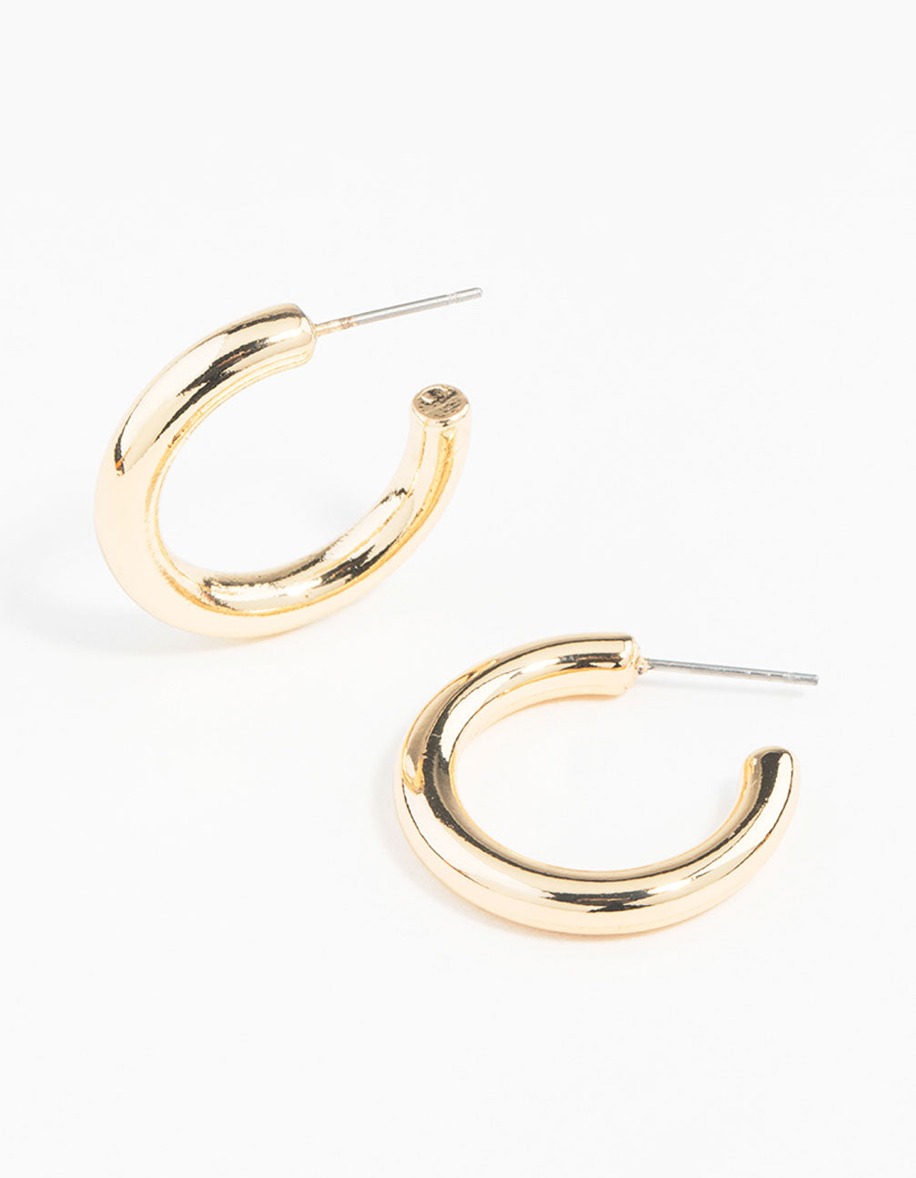 - These small hoops feature a polished metal finish in gold tone.