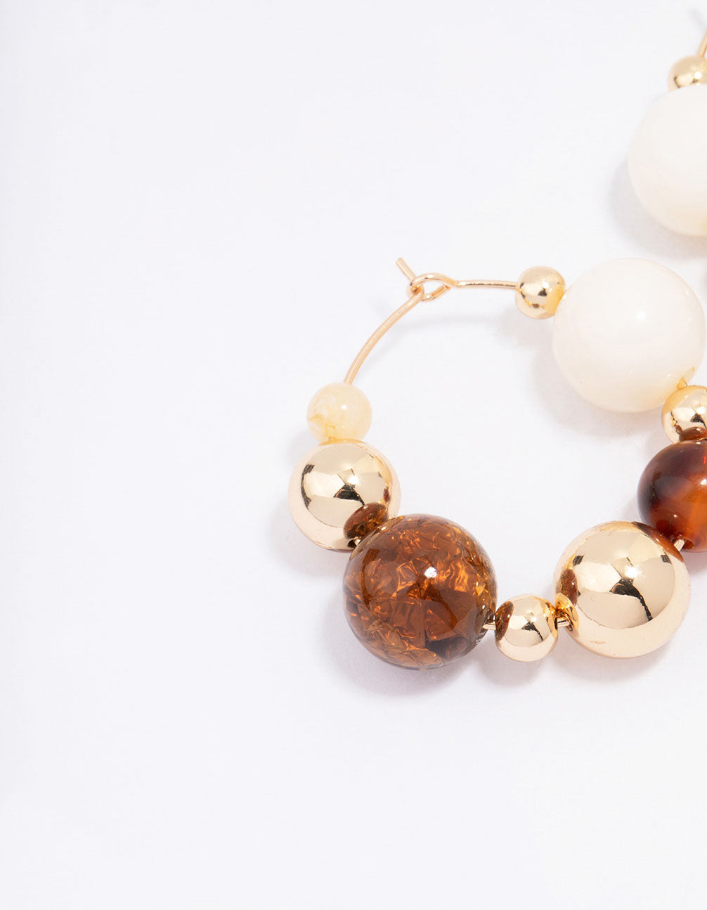 Embellish your stack with these gorgeous, gold-toned hoops. These chunky hoop earrings feature a collection of warm-toned beads in a range of different finishes. Perfect for adding dimension and texture to your look this season!