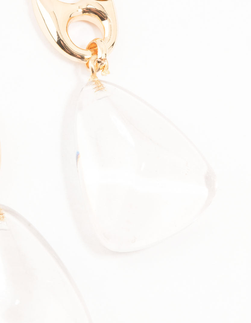 Gold Clear Abstract Drop Earrings