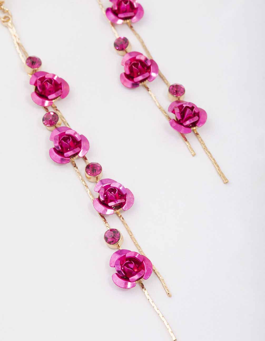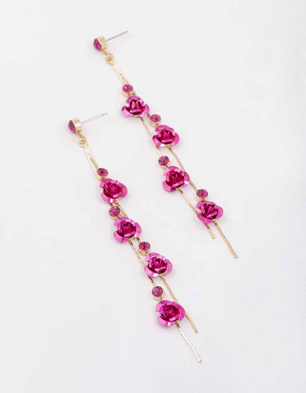 These vibrant drop earrings feature a gorgeous, gold-toned setting adorned with hot pink flowers for a standout finish to your stack.
