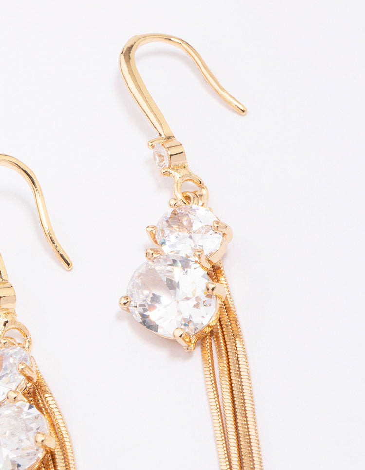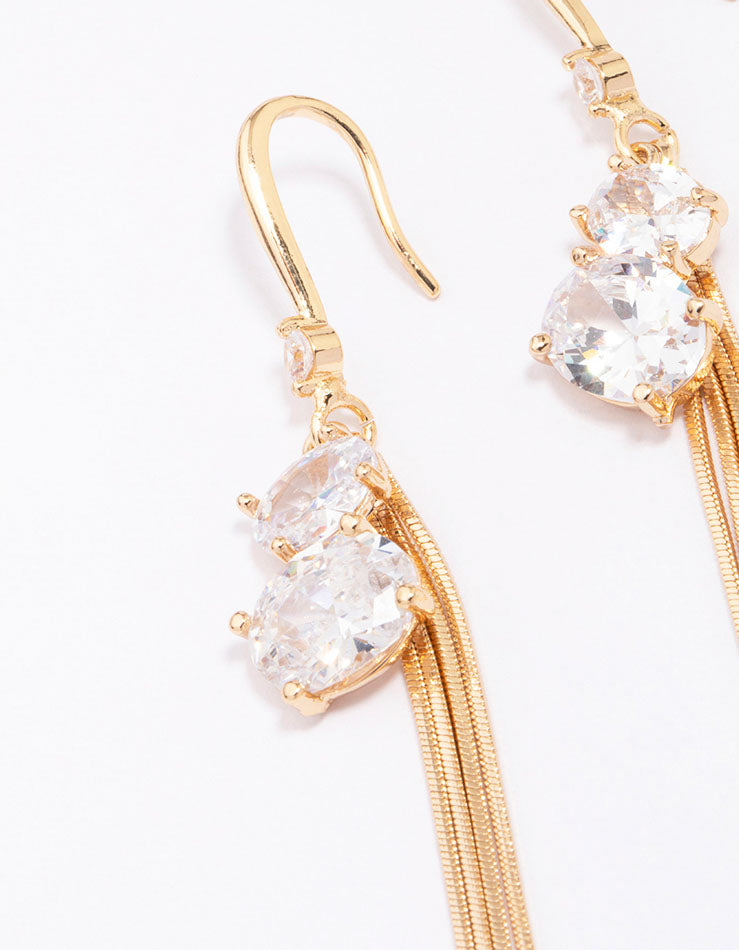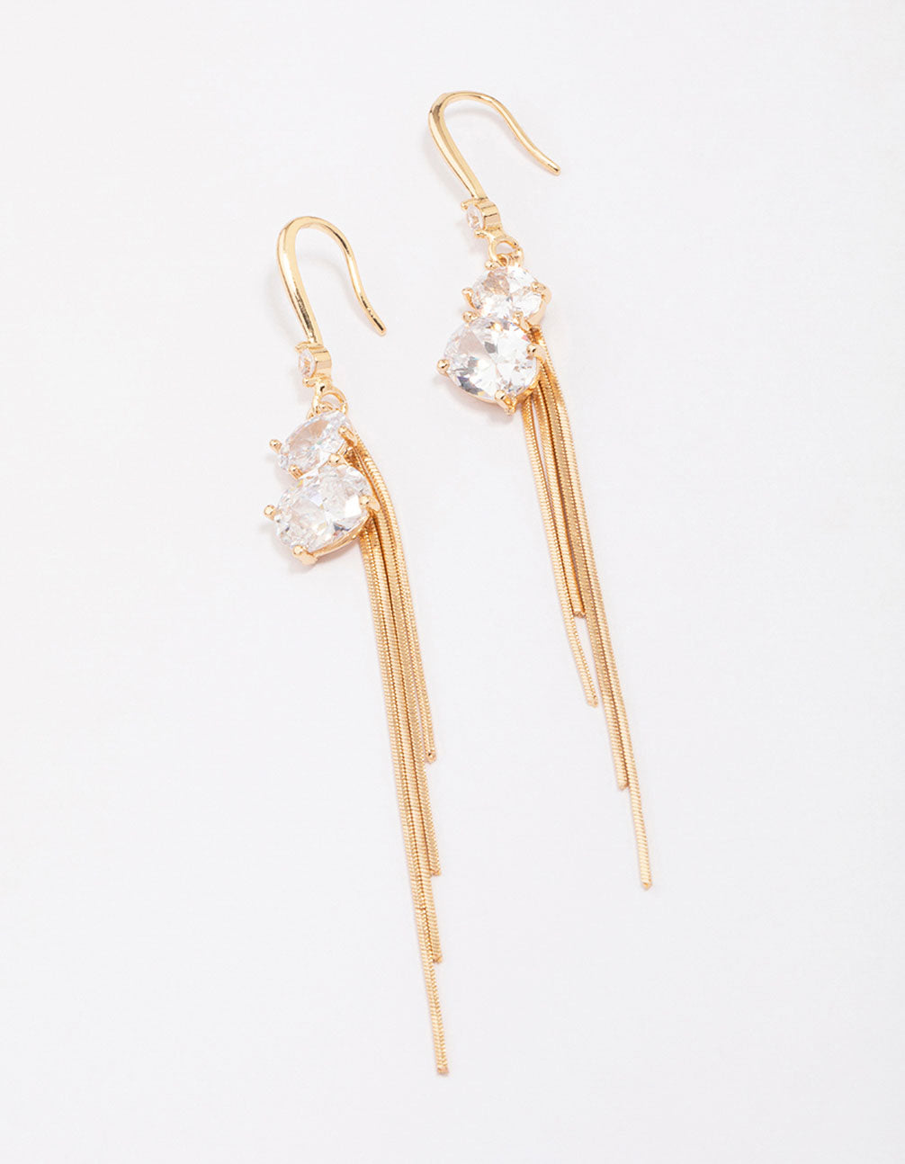 For a captivating addition to your look, style these gorgeous, gold-toned drop earrings. These lovely statement earrings feature a cascading, cup chain design adorned with large cubic zirconia crystals for added dimension.