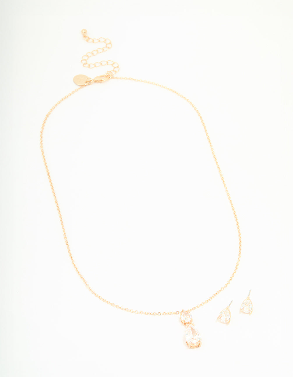 Gold Cubic Zirconia Classic Teardrop Earrings & Necklace Set Gold Cubic Zirconia Classic Teardrop Earrings & Necklace Set Gold Cubic Zirconia Classic Teardrop Earrings & Necklace Set