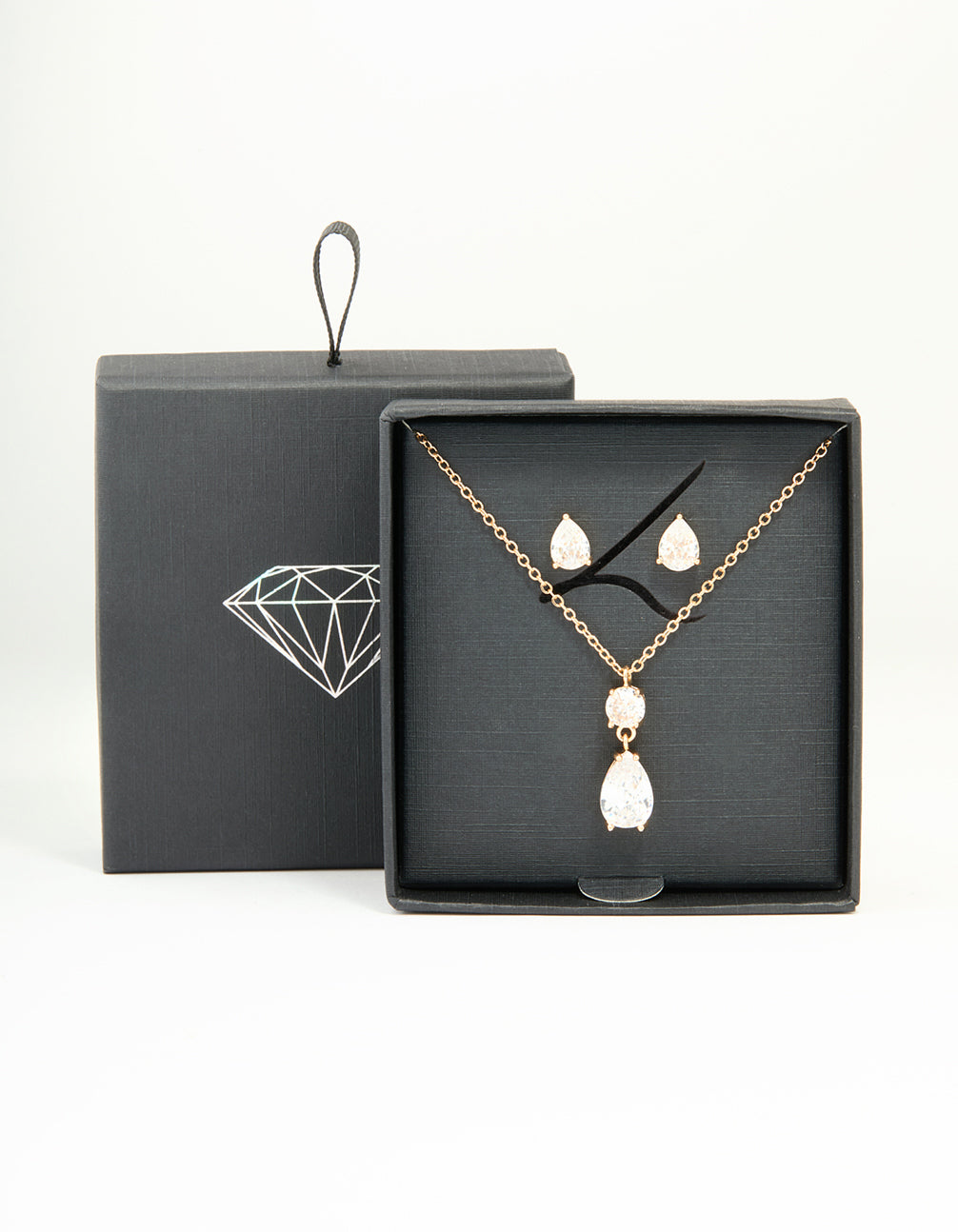 • Gold Cubic Zirconia Classic Teardrop Earrings & Necklace Set - link has visual effect only