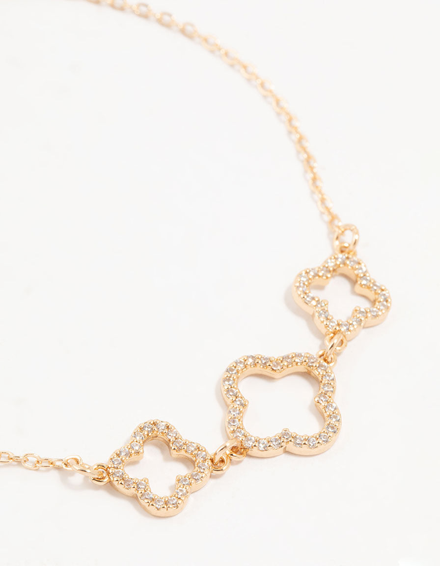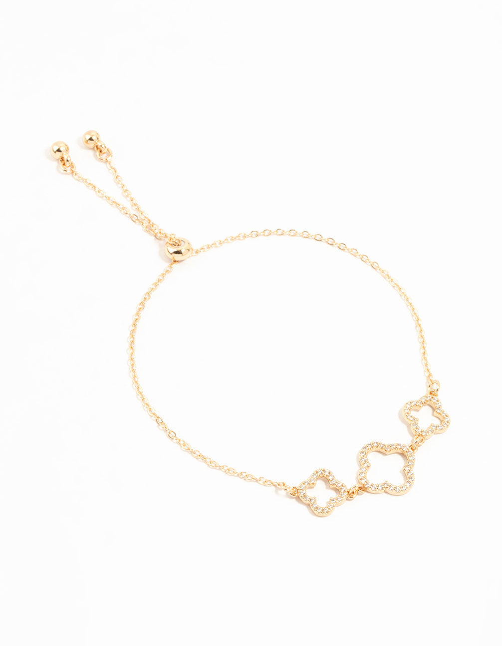 Add some good fortune with this gorgeous gold bracelet! Featuring cubic zirconia flowers and a delicate chain, it's perfect for a touch of sparkle and luck.