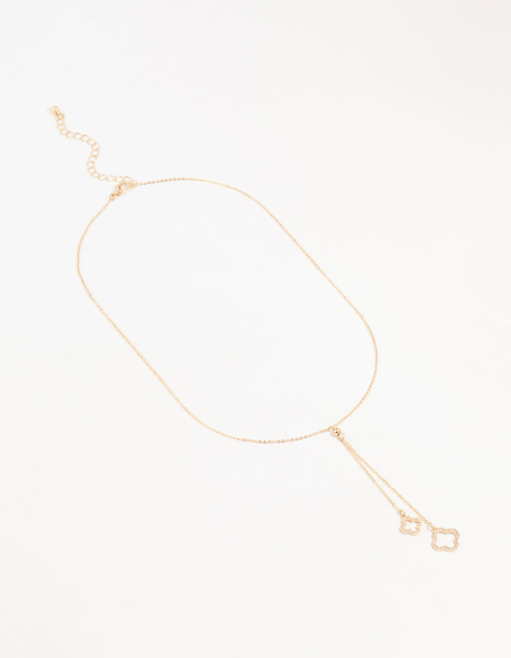 Add a touch of luck and style with this gold-toned necklace! Featuring two cubic zirconia flower drop pendants and a cute Y-neck design, it's perfect for a glam look.