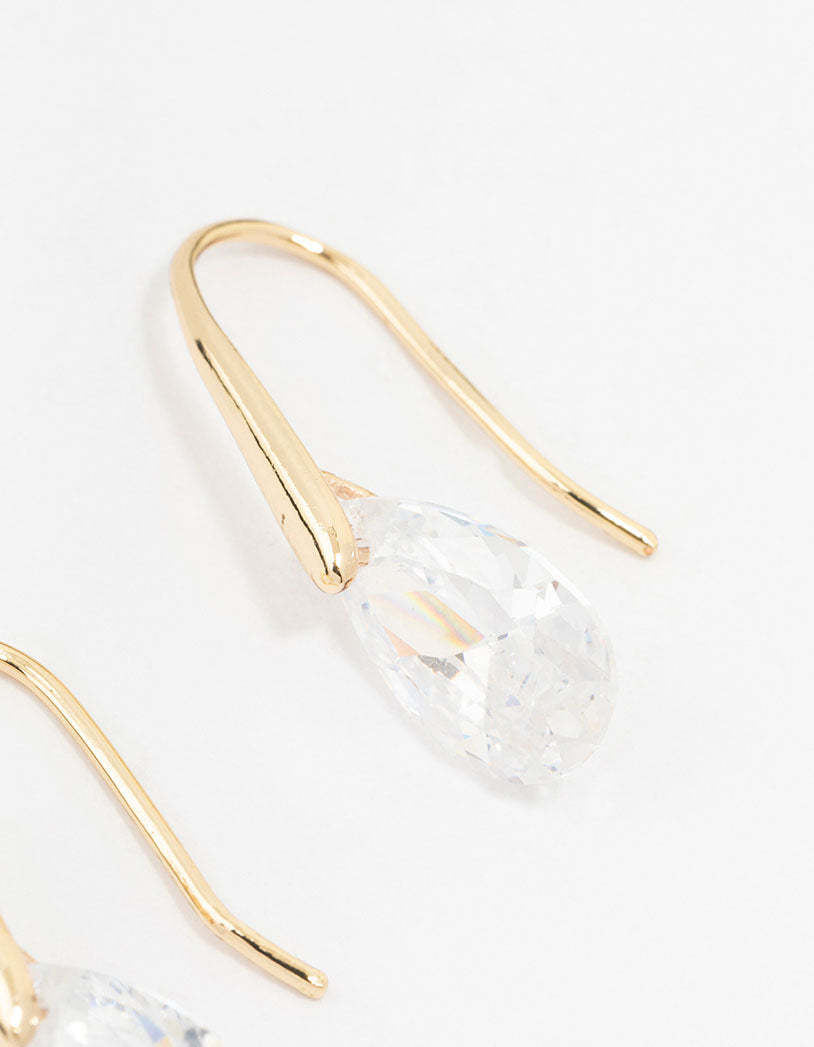 Gold Cubic Zirconia Teardrop Hook Drop Earrings