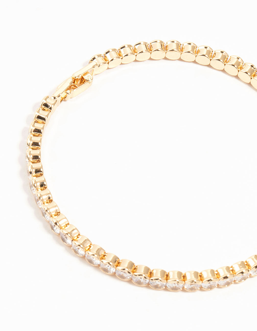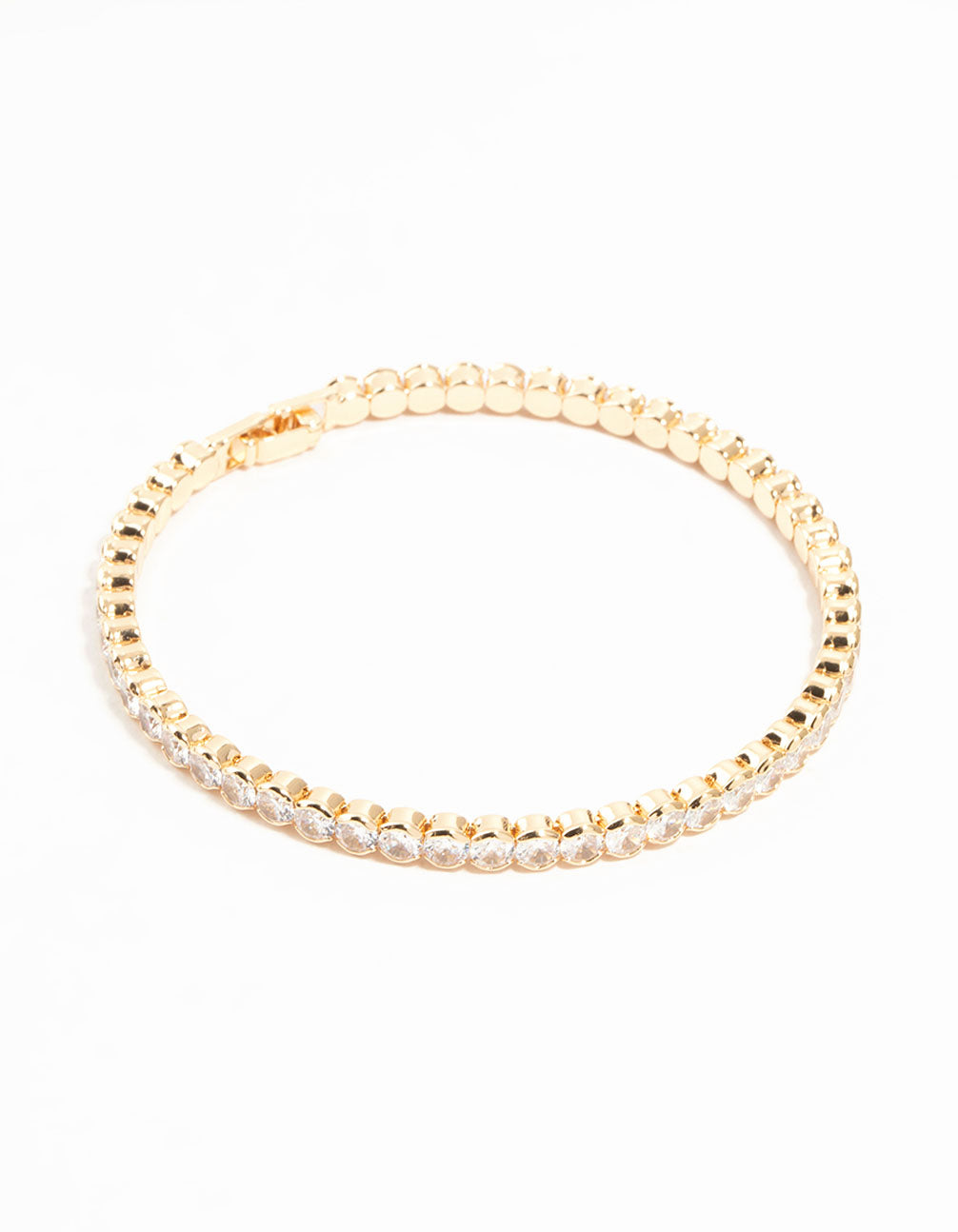 Add some glam with this gold-toned tennis bracelet! Featuring cubic zirconia crystals, it's perfect for any occasion. Dress it up or down, wear it solo or stack it with other bracelets for a trendy look.