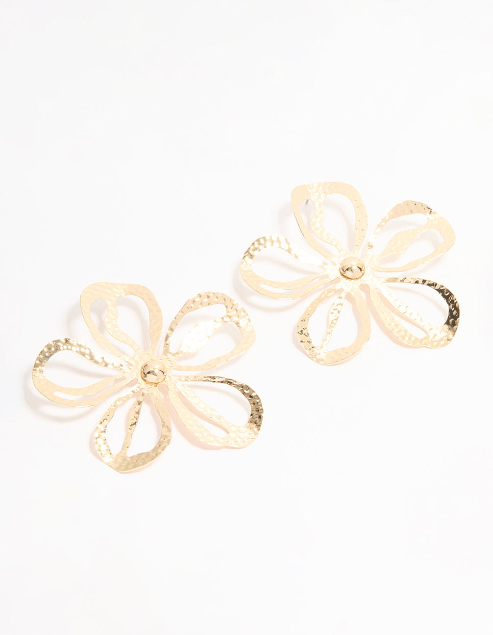 Brighten up your look with these Gold Cut Out Large Flower Stud Earrings! These stud earrings feature a delicate floral shape, crafted in a gold-tone finish that's effortlessly chic. Perfect for adding a touch of elegance to any outfit, these earrings are ideal for day-to-night styling. Pair them with a flowy dress for a garden party or with a sleek blazer for a polished office look. Whether you're dressing up for a special occasion or simply want to elevate your everyday jewellery game, these floral studs are a versatile accessory you'll love wearing again and again.