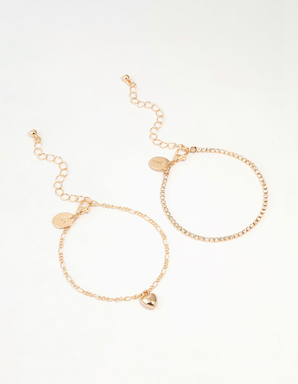 Gold Diamante Chain & Heart Bracelets 2-Pack