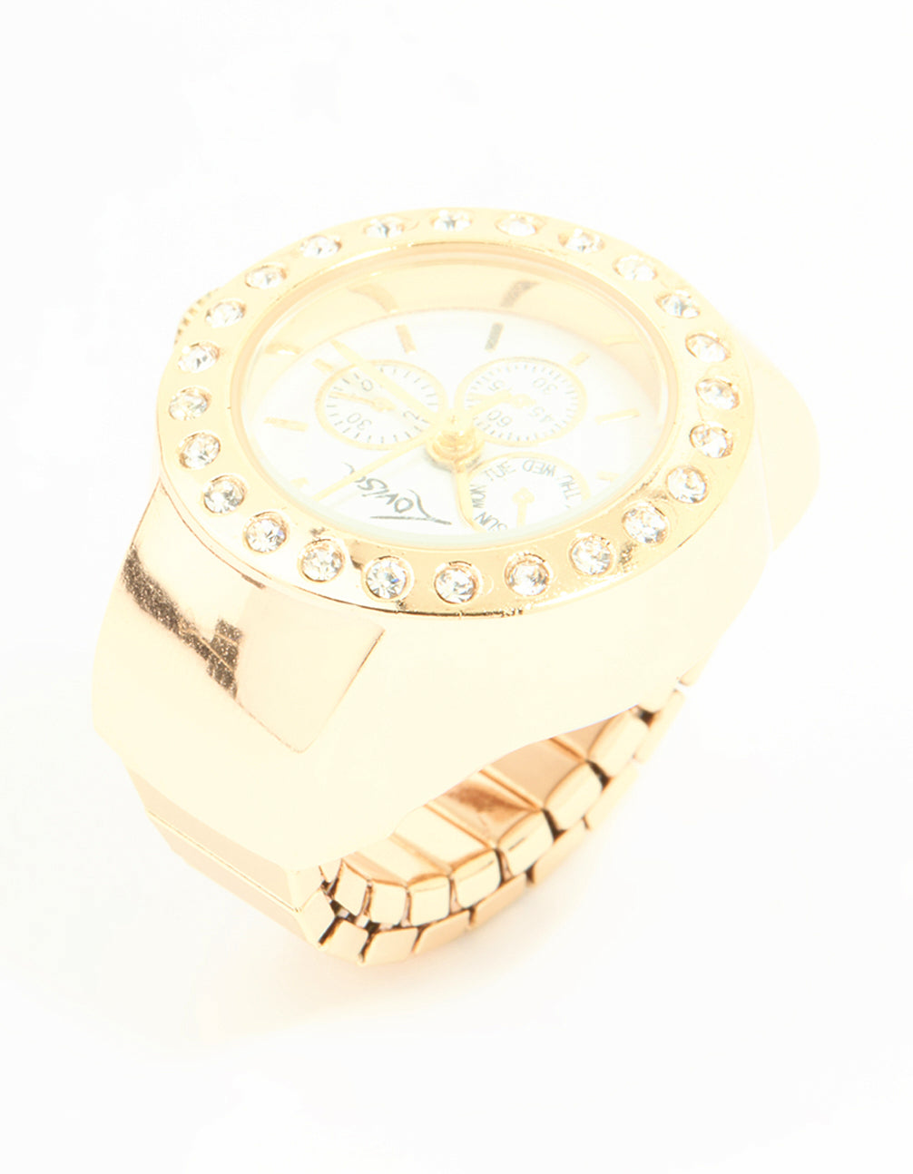 Make every moment sparkle with this Gold Diamante Chronograph Watch Ring! A unique blend of jewellery and function, this dazzling ring is encrusted with shimmering diamantes, making it a perfect statement piece. The stunning gold-tone finish adds a luxe feel, while the clever chronograph functional watch design ensures you're always stylishly on time. Ideal for dressing up any outfit, it's perfect for parties, special occasions, or adding a touch of glamour to everyday wear. Pair it with other gold accessories or let it shine solo—it's versatile, eye-catching, and endlessly chic!