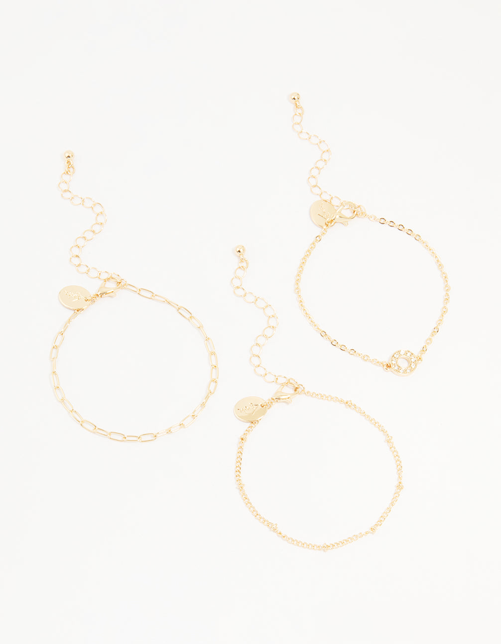 Gold Diamante Circle & Chain Bracelets 3-Pack