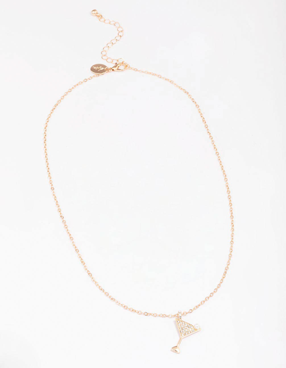 Complete your outfit with this signature, gold-toned pendant necklace. This unique pendant features a diamante-encrusted cocktail glass, perfect for styling to your next event!