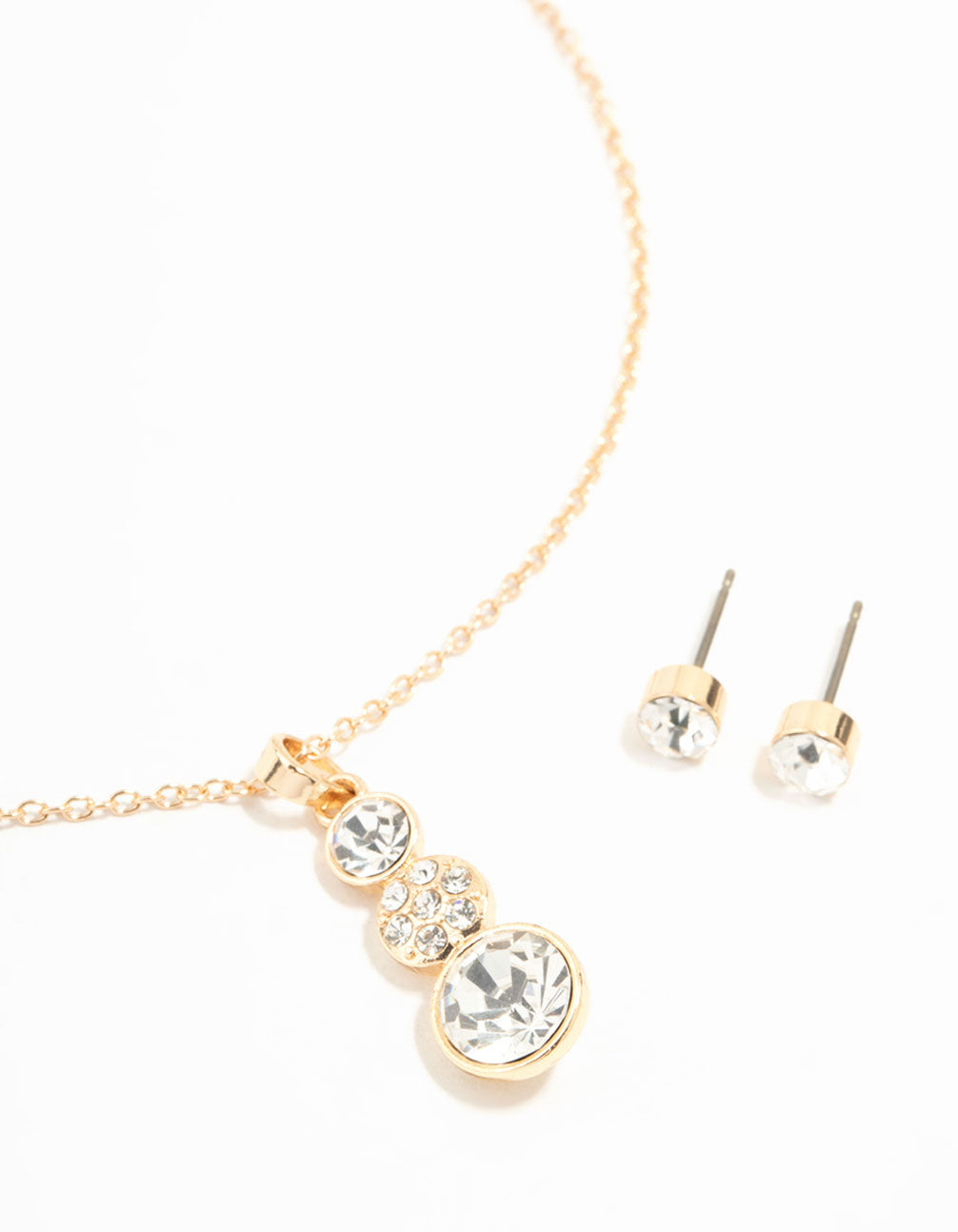 Gold Diamante Drop Necklace & Stud Earrings Set Gold Diamante Drop Necklace & Stud Earrings Set Gold Diamante Drop Necklace & Stud Earrings Set