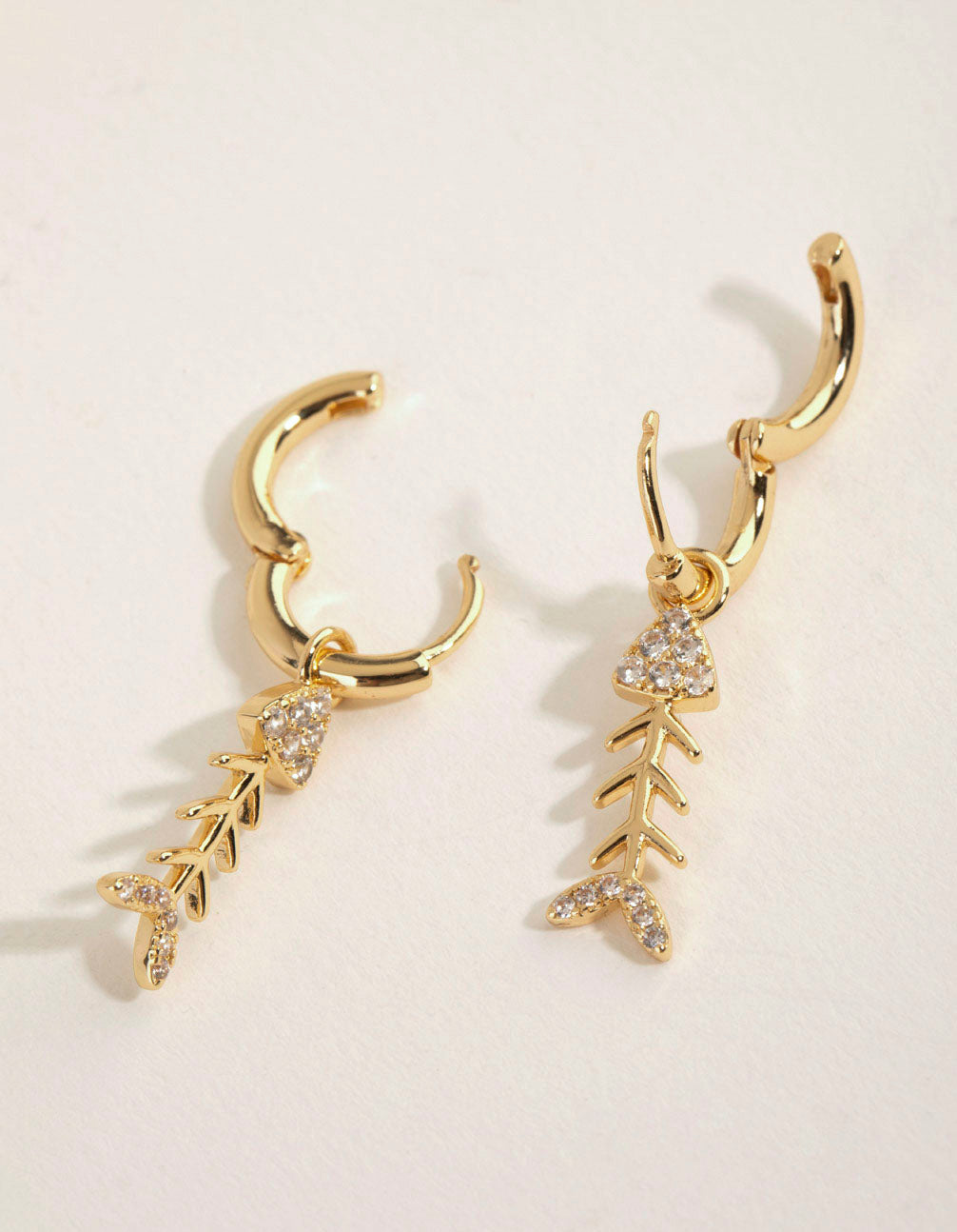 Mix them, match them, stack them! These adorable huggies are perfect for creating a curated look. They're gold toned, and feature a hanging fishbone design with diamante embellishments. Too cute! Stack them with other pieces to create a look just for you.