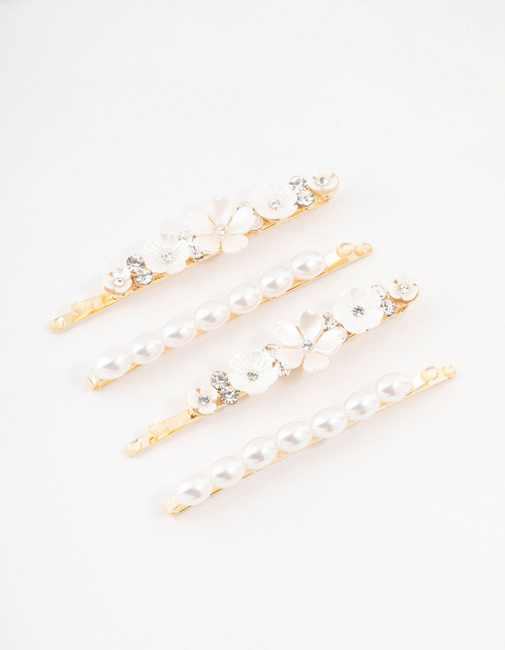 Gold Diamante & Flower Pearl Clips 4-Pack Gold Diamante & Flower Pearl Clips 4-Pack Gold Diamante & Flower Pearl Clips 4-Pack