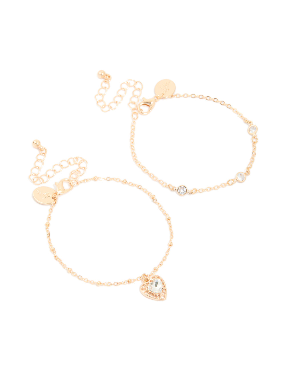 Gold Diamante Heart & Circle Charm Bracelets 2-Pack